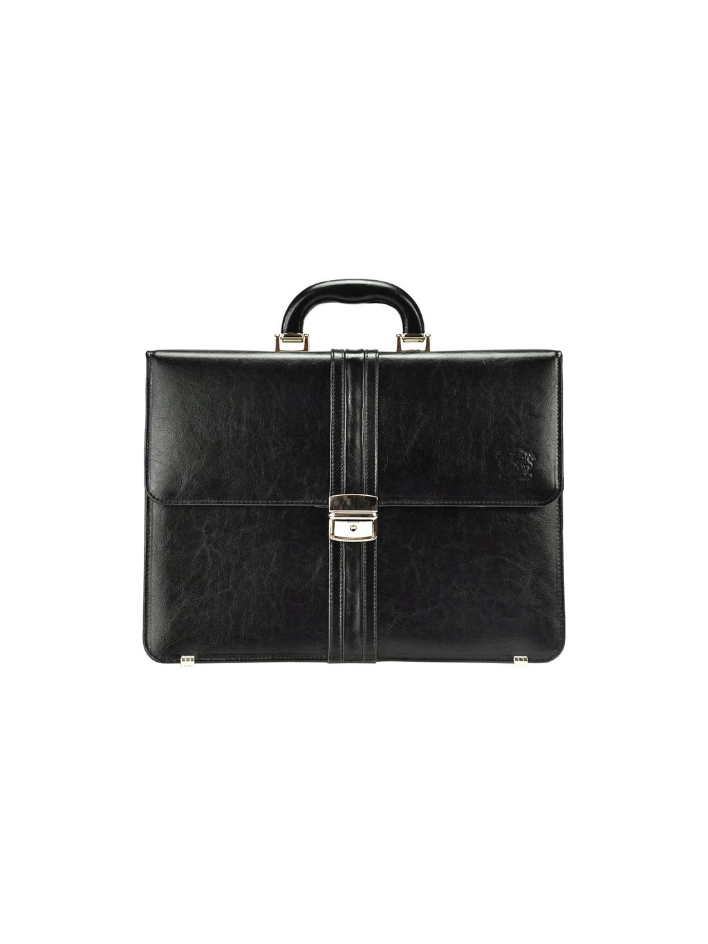 Klasická pánská business aktovka Stefania ušitá z pravé kůže v klasické v černé barvě. Aktovka se uzavírá klopou s klasickým kovovým kovovým zapínáním na zámek. Uvnitř je tato aktovka rozdělena na dvě části, mezi kterými je zipem uzavíratelná separace. Přihrádky obsahují kasičku na kreditní karty či doklady, poutka na psací potřeby, nebo praktickou kapsičku na mobilní telefon. Na zadní straně se nachází velká zipem uzavíratelná kapsa uzavíratelná zipem. Aktovka má také dlouhý popruh, takže jí lze nosit nejen v ruce, ale také pohodlně přes rameno. Kování na aktovce je stříbrné barvy.