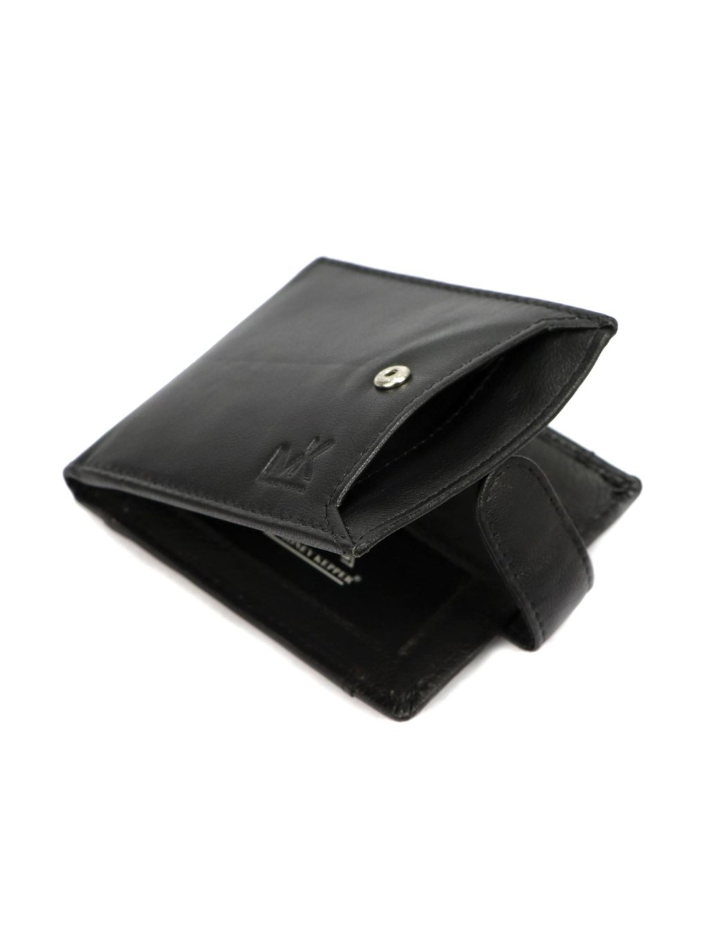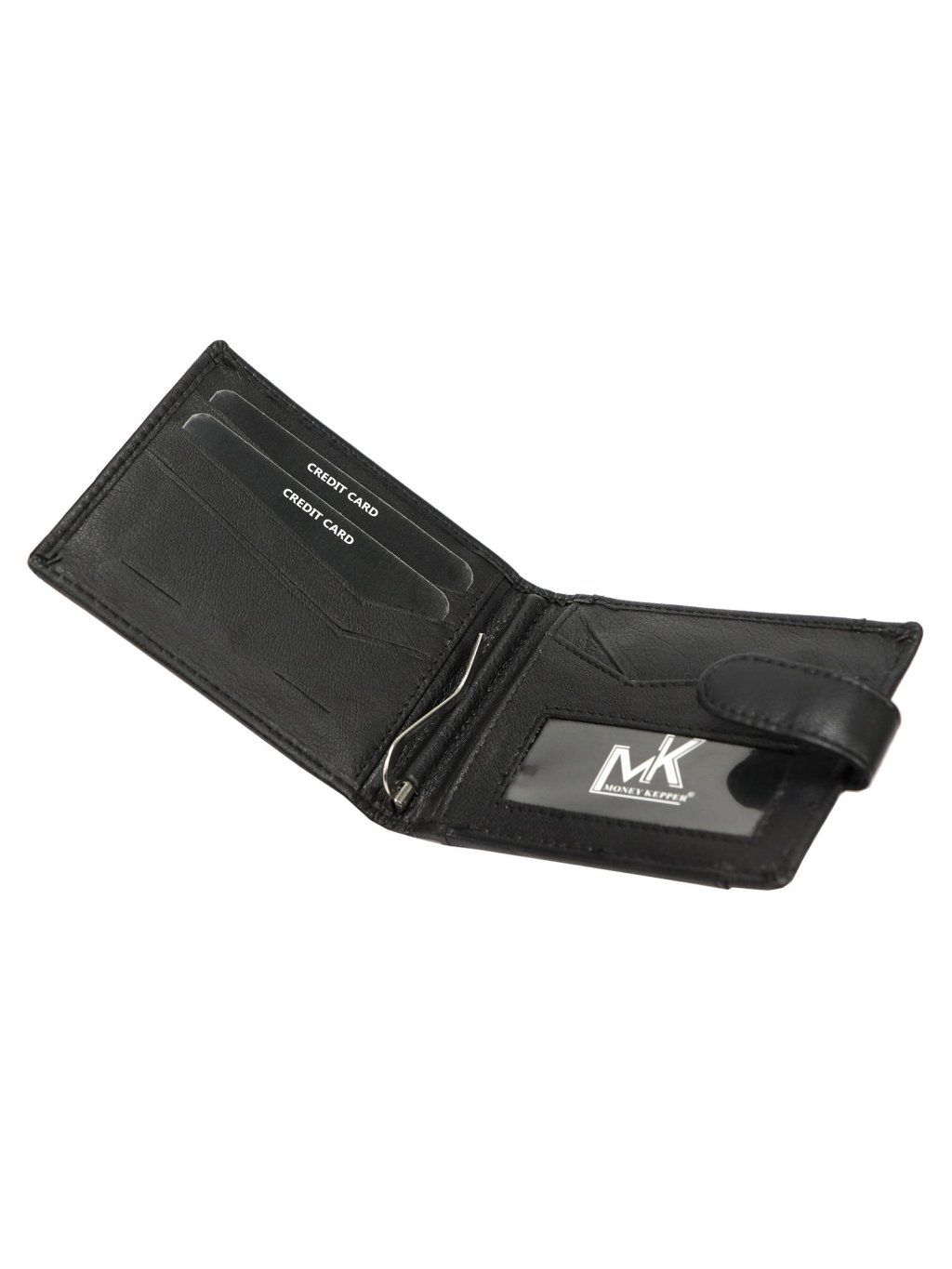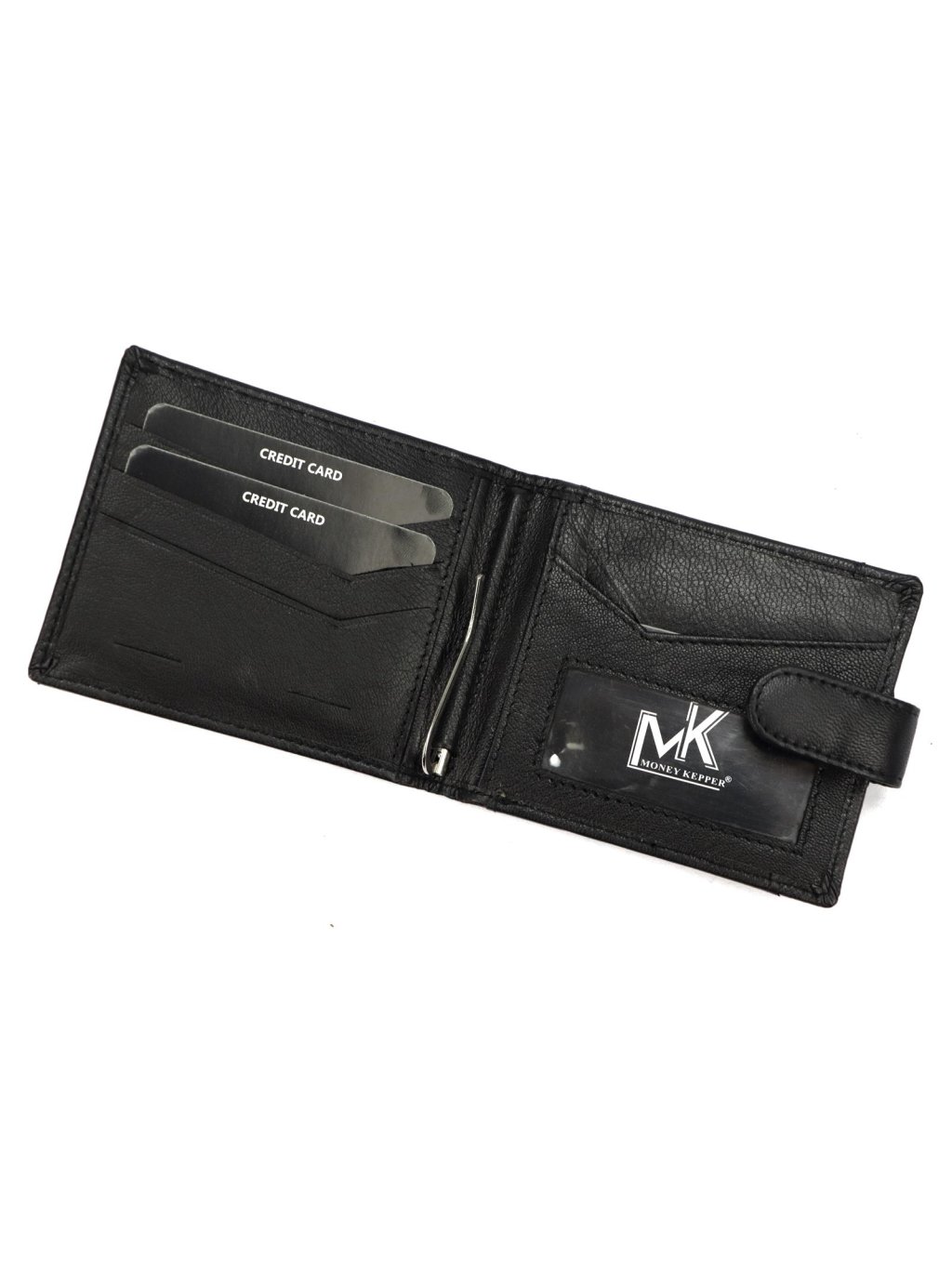Pánská kožená dolarovka módní značky Money Kepper, která je ušita z přírodní hovězí kůže. Na přední straně dolarovky nalezneme vyražené logo výrobce. Uvnitř nalezneme stříbrnou sponu pro uchycení papírových bankovek a praktické přihrádky pro uložení kreditních karet a dokladů. Na zadní straně je kapsička na mince se zapínáním na druk.