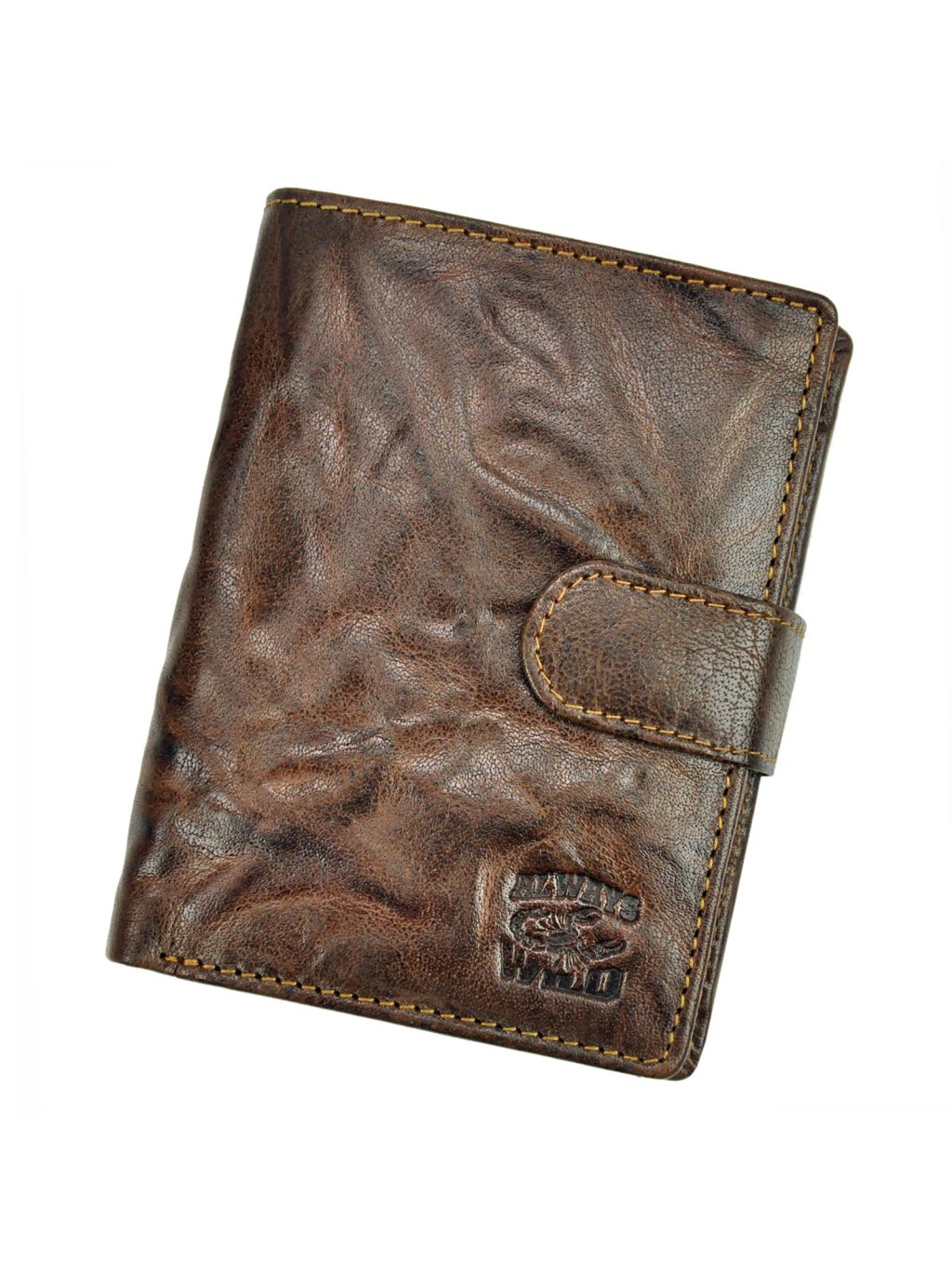 Pánská kožená na výšku orientovaná peněženka značky Always Wild. Uvnitř peněženky najdete malou kapsičku na mince se zapínáním na druk, přihrádky na doklady, věrnostní i kreditní karty. V horní části peněženky jsou fochy na papírové bankovky, které jsou podšité látkovou podšívkou. Peněženka je ušita z kvalitní pravé kůže a po obvodu prošita silnou nití, což zvyšuje její odolnost. Praktická zápinka na druk zajistí, že z peněženky nic nevypadne. Peněženka je dodávaná v papírové krabičce, díky které se z ní může stát úžasný dárek.