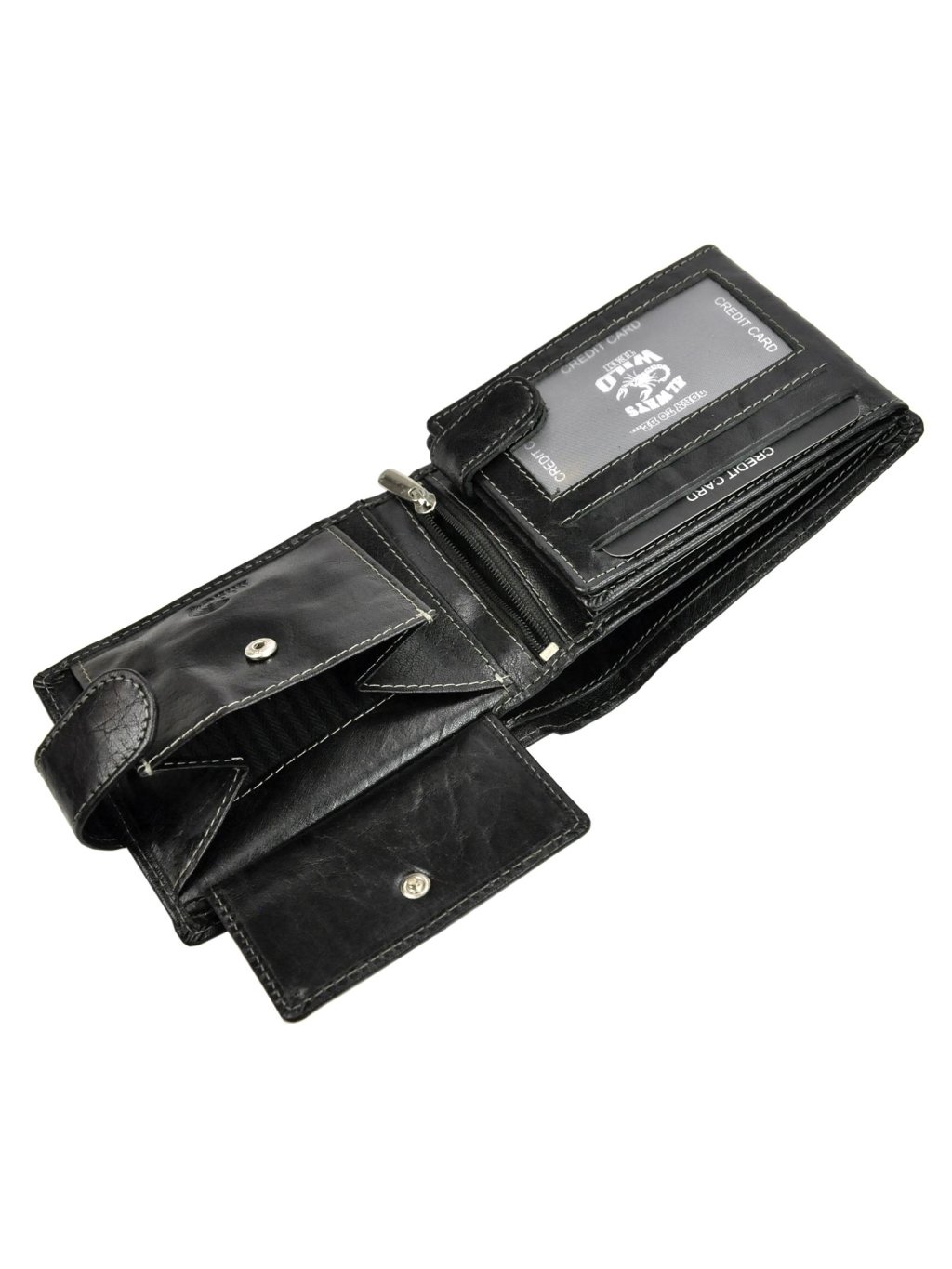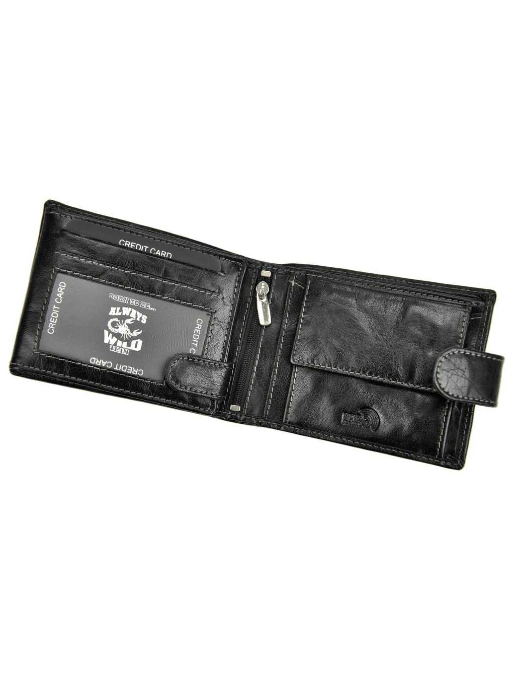 Elegantní pánská klasického střihu ušitá z pravé přírodní kůže. Celá peněženka se zapíná zápinkou s cvočkem. Uvnitř se nachází malý mincovník na drobné mince se zapínáním na patentku. V další části najdete přihrádky na doklady, věrnostní i kreditní karty. V horní části peněženky jsou fochy na papírové bankovky, podšité látkovou podšívkou.