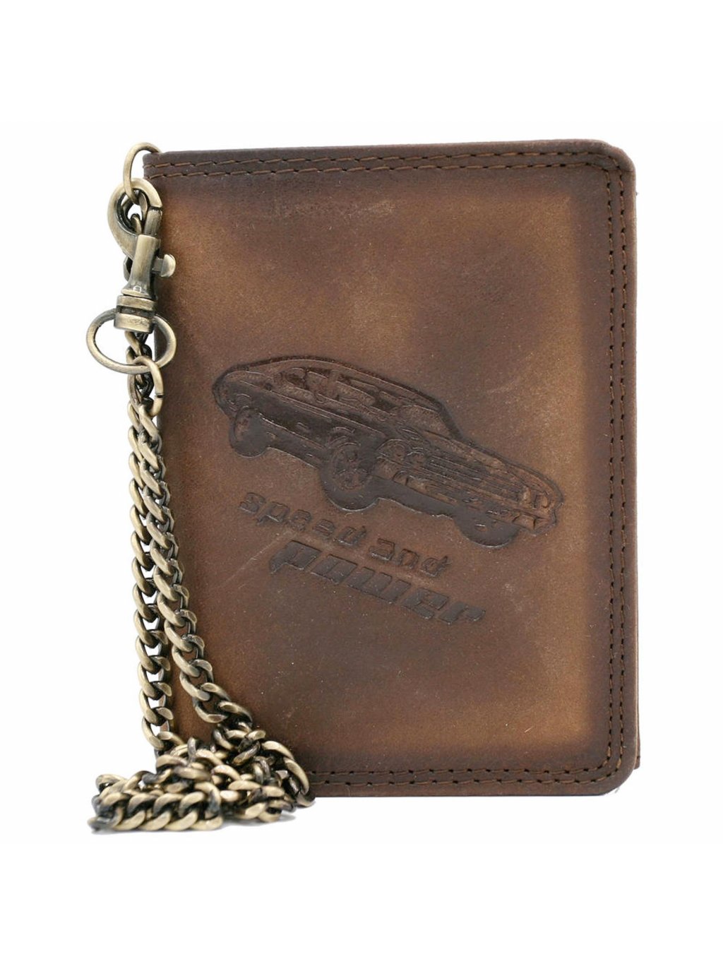Pánská kožená na výšku orientovaná peněženka značky Classic Motorcycles. Uvnitř peněženky najdete malou kapsičku na mince se zapínáním na druk, přihrádky na doklady, věrnostní i kreditní karty. V horní části peněženky jsou fochy na papírové bankovky, které jsou podšité látkovou podšívkou. Peněženka je ušita z kvalitní pravé kůže a po obvodu prošita silnou nití, což zvyšuje její odolnost. Peněženka má připínací řetízek.