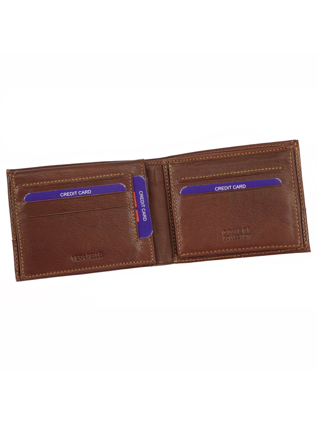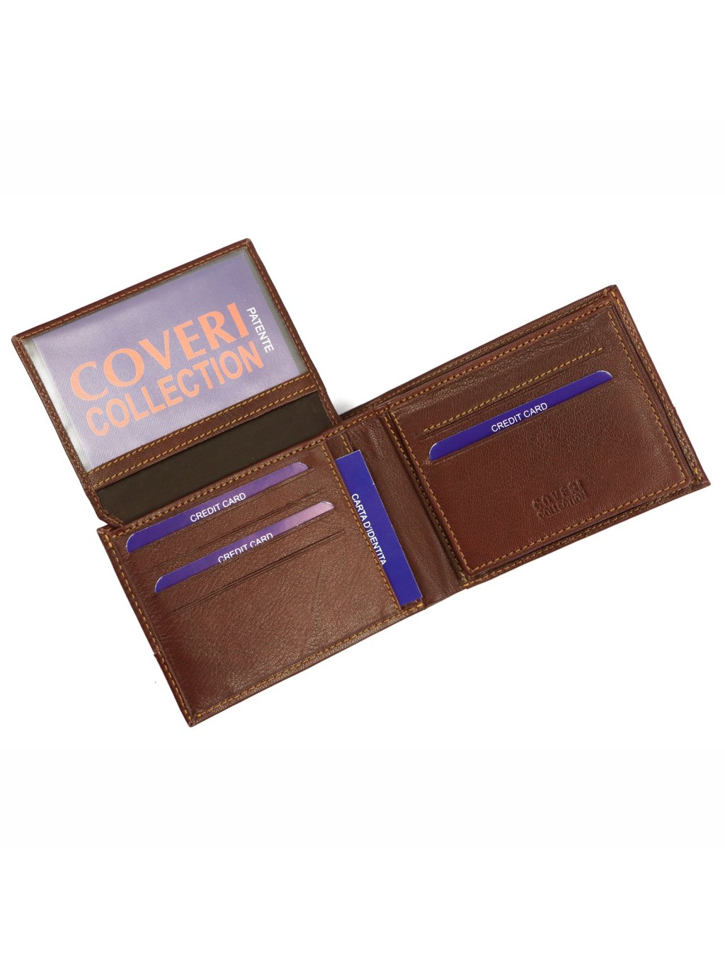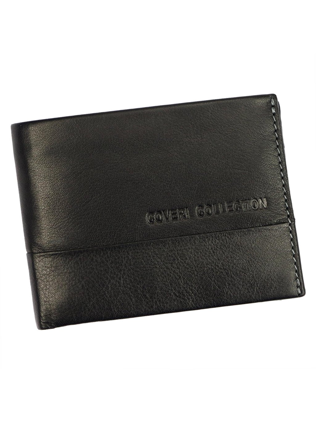 Pánská kožená na šířku orientovaná peněženka značky Coveri. Uvnitř peněženky najdete malou kapsičku na mince se zapínáním na druk, přihrádky na doklady, věrnostní karty a kreditní karty. V horní části peněženky jsou fochy na papírové bankovky, které jsou podšité látkovou podšívkou. Peněženka je ušita z kvalitní pravé kůže a po obvodu prošita silnou nití, což zvyšuje její odolnost.