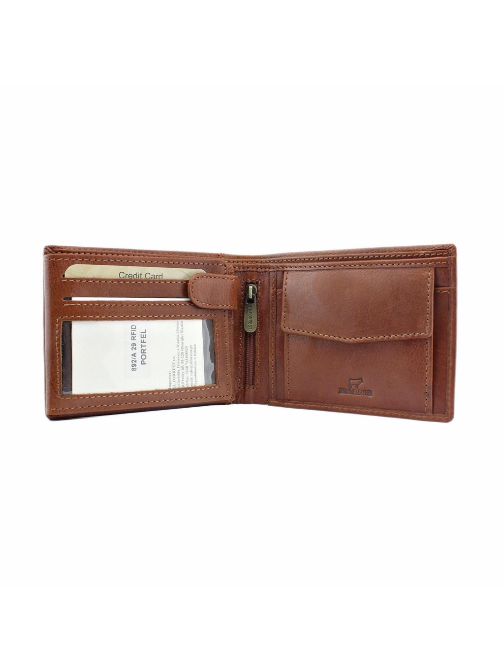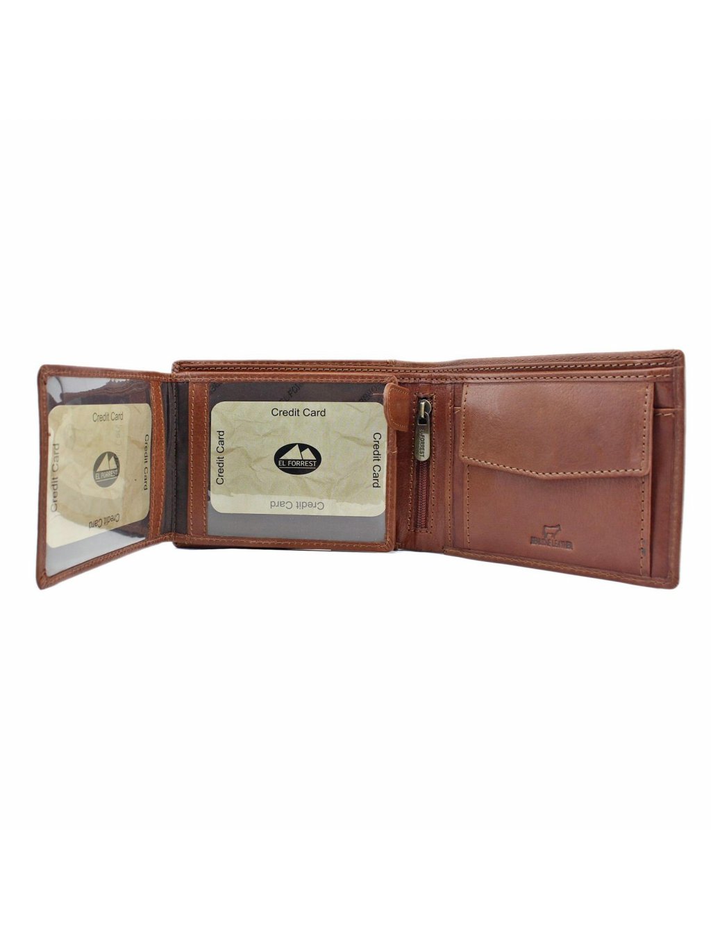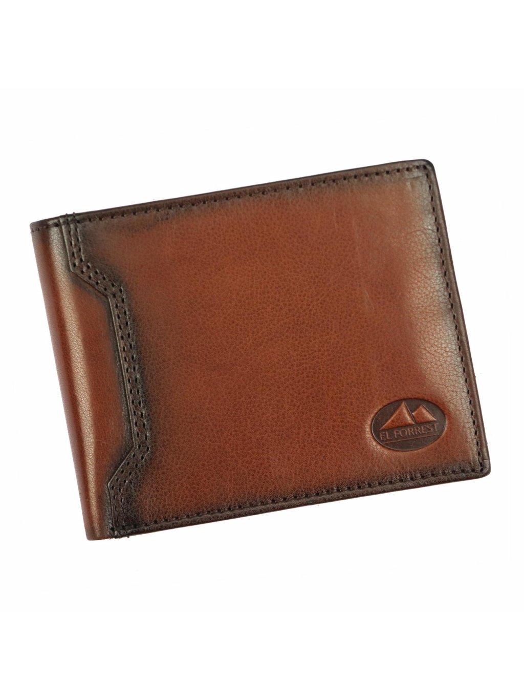 Pánská kožená na šířku orientovaná peněženka značky EL FORREST. Uvnitř peněženky najdete malou kapsičku na mince se zapínáním na druk, přihrádky na doklady, věrnostní karty a kreditní karty. V horní části peněženky jsou fochy na papírové bankovky, které jsou podšité látkovou podšívkou. Peněženka je ušita z kvalitní pravé kůže a po obvodu prošita silnou nití, což zvyšuje její odolnost.