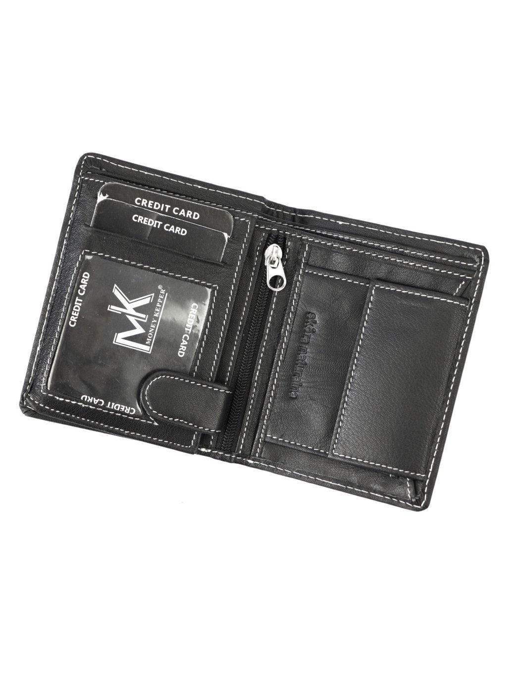 Elegantní pánská kožená peněženka značky Money Kepper. Uvnitř peněženky najdete drukem uzavíratelnou kapsičku na drobné mince, přihrádky na doklady, věrnostní karty i platební karty. Fochy na papírové bankovky jsou podšité látkovou podšívkou. Peněženka je ušitá z kvalitní přírodní kůže a je po obvodu prošitá pevnou nití, což zvyšuje její životnost.