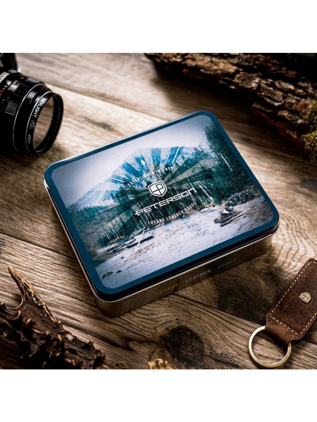 Pánská kožená na šířku orientovaná peněženka značky Peterson. Uvnitř peněženky najdete kapsičku na mince se zapínáním na druk, přihrádky na doklady, věrnostní i kreditní malou karty. V horní části peněženky jsou fochy na papírové bankovky, které jsou podšité látkovou podšívkou. Peněženka je ušita z kvalitní pravé kůže a po obvodu prošita silnou nití, což zvyšuje její odolnost. Peněženka je dodávaná v hliníkové krabičce, díky které se z ní může stát úžasný dárek.