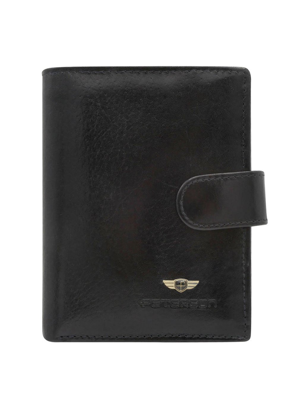 Pánská kožená na výšku orientovaná peněženka značky Peterson. Uvnitř peněženky najdete malou kapsičku na mince se zapínáním na zip, přihrádky na doklady, věrnostní karty a kreditní karty. V horní části peněženky jsou fochy na papírové bankovky, které jsou podšité látkovou podšívkou. Peněženka je ušita z kvalitní pravé kůže a po obvodu prošita silnou nití, což zvyšuje její odolnost. Praktická zápinka na druk zajistí, že z peněženky nic nevypadne.