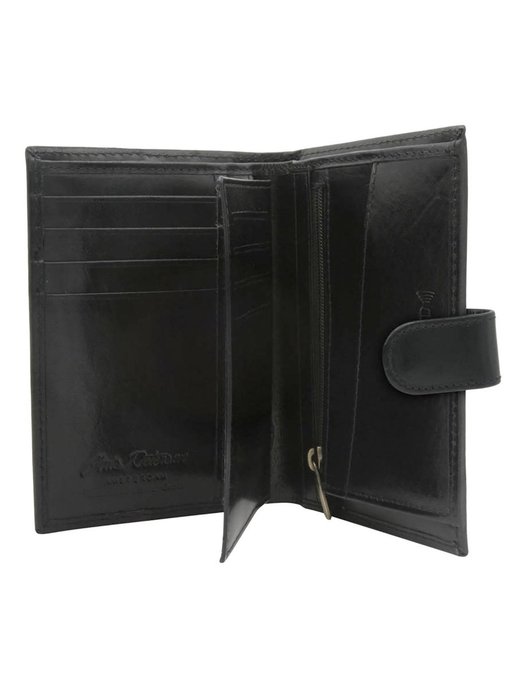 Pánská kožená na výšku orientovaná peněženka značky Peterson. Uvnitř peněženky najdete malou kapsičku na mince se zapínáním na zip, přihrádky na doklady, věrnostní karty a kreditní karty. V horní části peněženky jsou fochy na papírové bankovky, které jsou podšité látkovou podšívkou. Peněženka je ušita z kvalitní pravé kůže a po obvodu prošita silnou nití, což zvyšuje její odolnost. Praktická zápinka na druk zajistí, že z peněženky nic nevypadne.