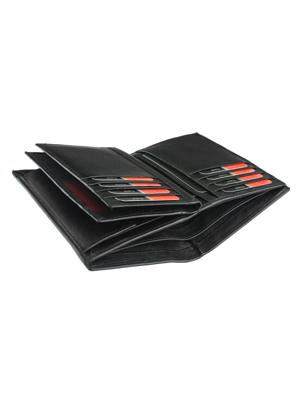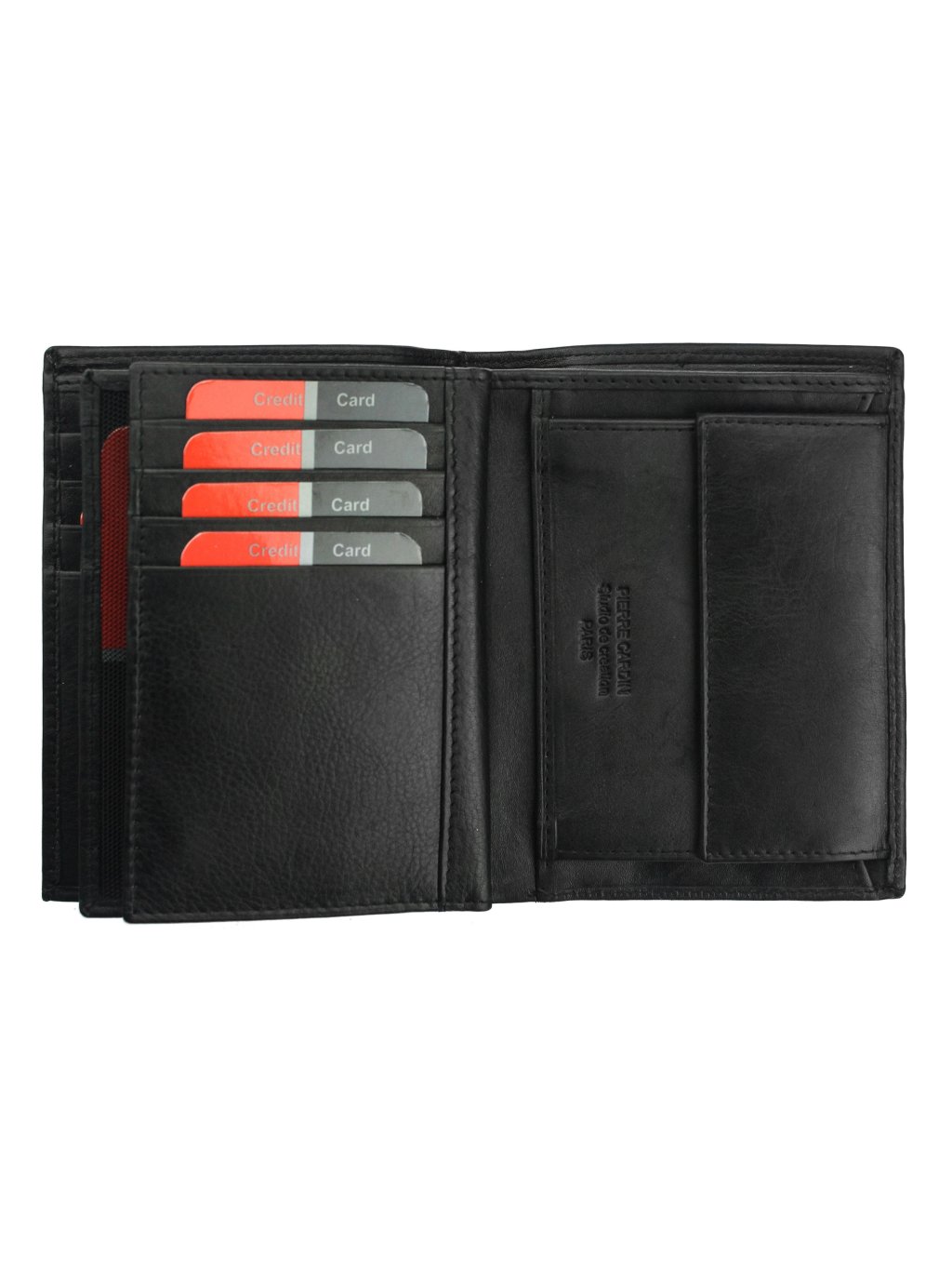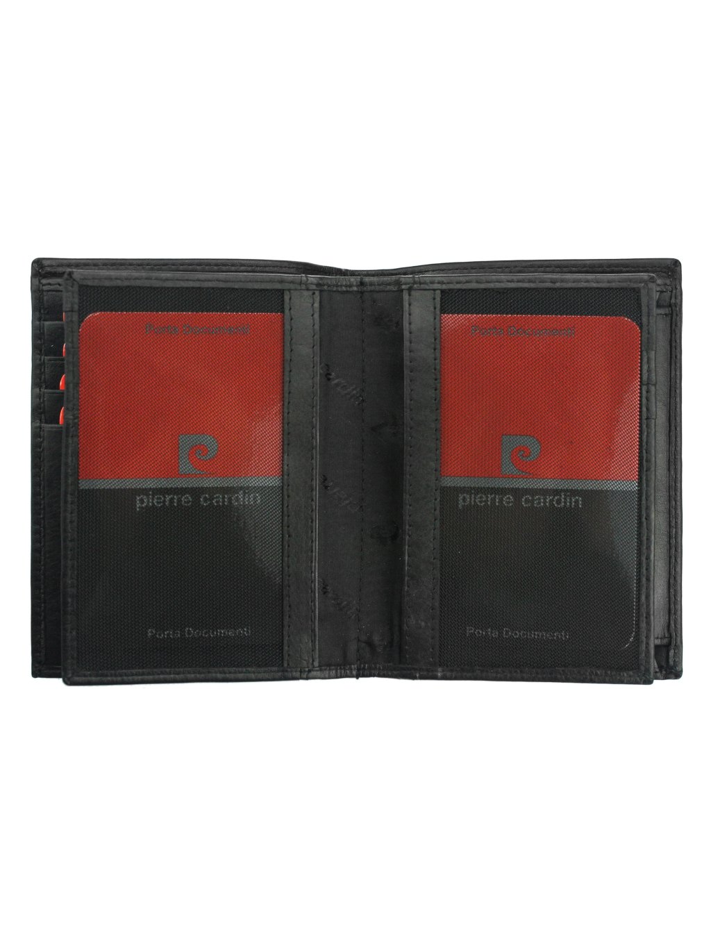 Prostorná pánská peněženka z dílen francouzské módní značky Pierre Cardin, která je ušitá z pravé přírodní měkké hovězí kůže. Peněženka je orientovaná na výšku a je vhodná pro někoho kdo u sebe potřebuje nosit hodně karet a dokladu. Vnitřní část je přehledně členěná. Na pravé straně nalezneme mincovník na drobné mince, který se zavírá drukem. Na levé straně je vodorovná klopna s dostatkem přihrádek pro nejrůznější věrnostní karty, kreditní karty i doklady. Na papírové bankovky má peněženka dva fochy na vrchní straně. Celá peněženka je podšitá látkovou podšívku s vyobrazeným logem francouzské značky. Toto logo rovněž zdobí i přední stranu peněženky. Vše je dodáváno v pevné papírové krabičce.
