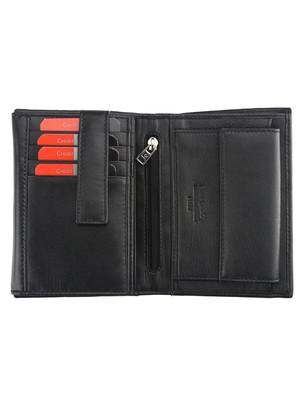 Elegantní pánská na výšku, orientovaná peněženka ušitá z pravé kůže, nabízí kombinaci klasického designu s praktičnosti. Uvnitř peněženky se nachází malý mincovník na drobné mince se zapínáním na patentku. V další části najdete přihrádky na doklady, věrnostní i kreditní karty. V horní části peněženky jsou fochy na papírové bankovky, podšité látkovou podšívkou.