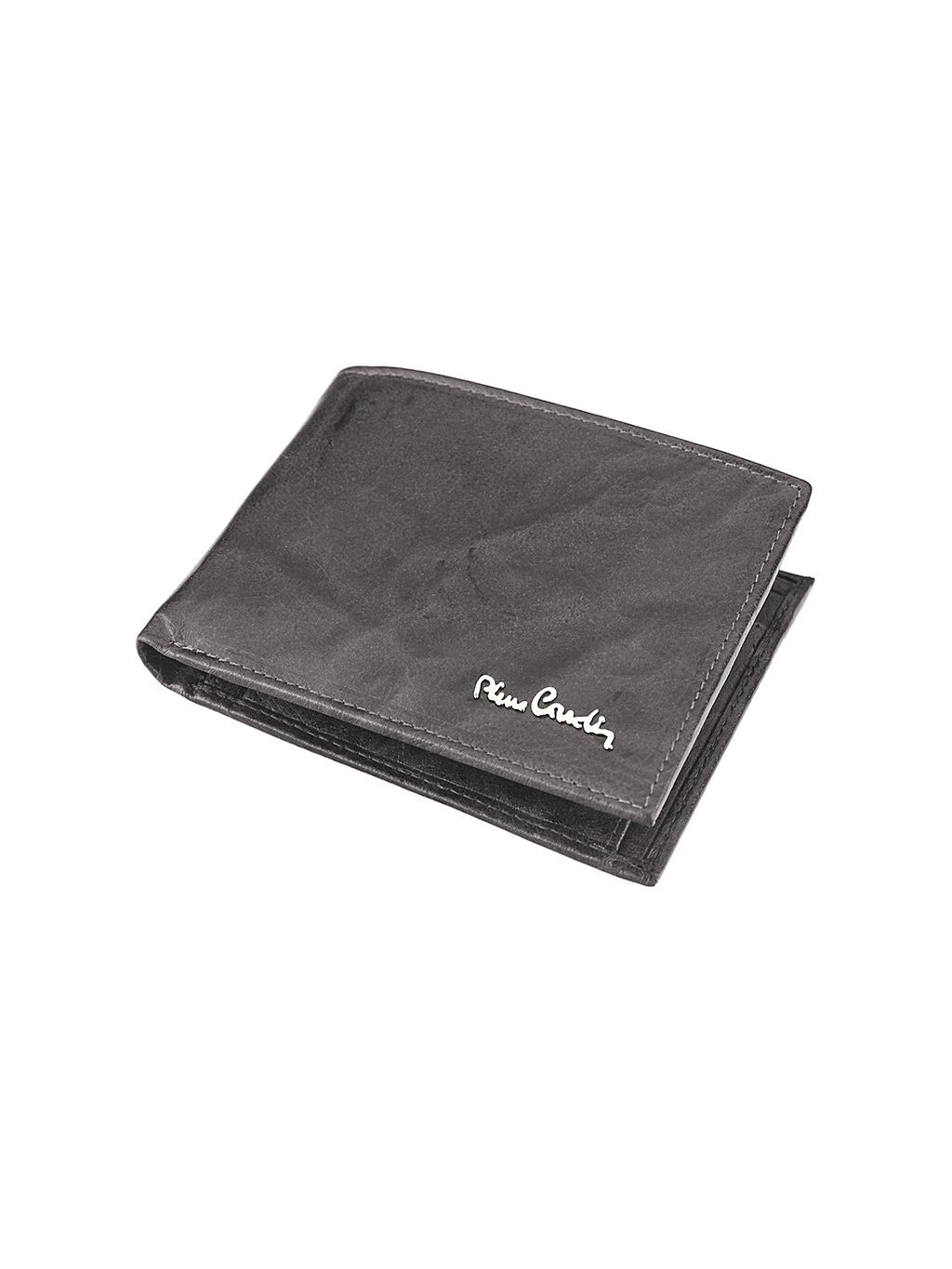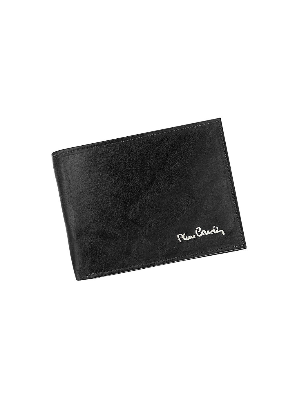 Prostorná pánská peněženka z dílen francouzské módní značky Pierre Cardin, která je ušitá z pravé přírodní měkké hovězí kůže. Peněženka je orientovaná na šířku a je vhodná pro někoho kdo u sebe potřebuje nosit hodně karet a dokladu. Vnitřní část je přehledně členěná. Na pravé straně nalezneme mincovník na drobné mince, který se zavírá drukem. Uprostřed peněženky je „tajná“ zipem uzavíratelná kapsička. Na levé straně je vodorovná klopna s dostatkem přihrádek pro nejrůznější věrnostní karty, kreditní karty i doklady. Na papírové bankovky má peněženka dva fochy na vrchní straně. Celá peněženka je podšitá látkovou podšívku s vyobrazeným logem francouzské značky. Toto logo rovněž zdobí i přední stranu peněženky. Vše je dodáváno v pevné papírové krabičce.