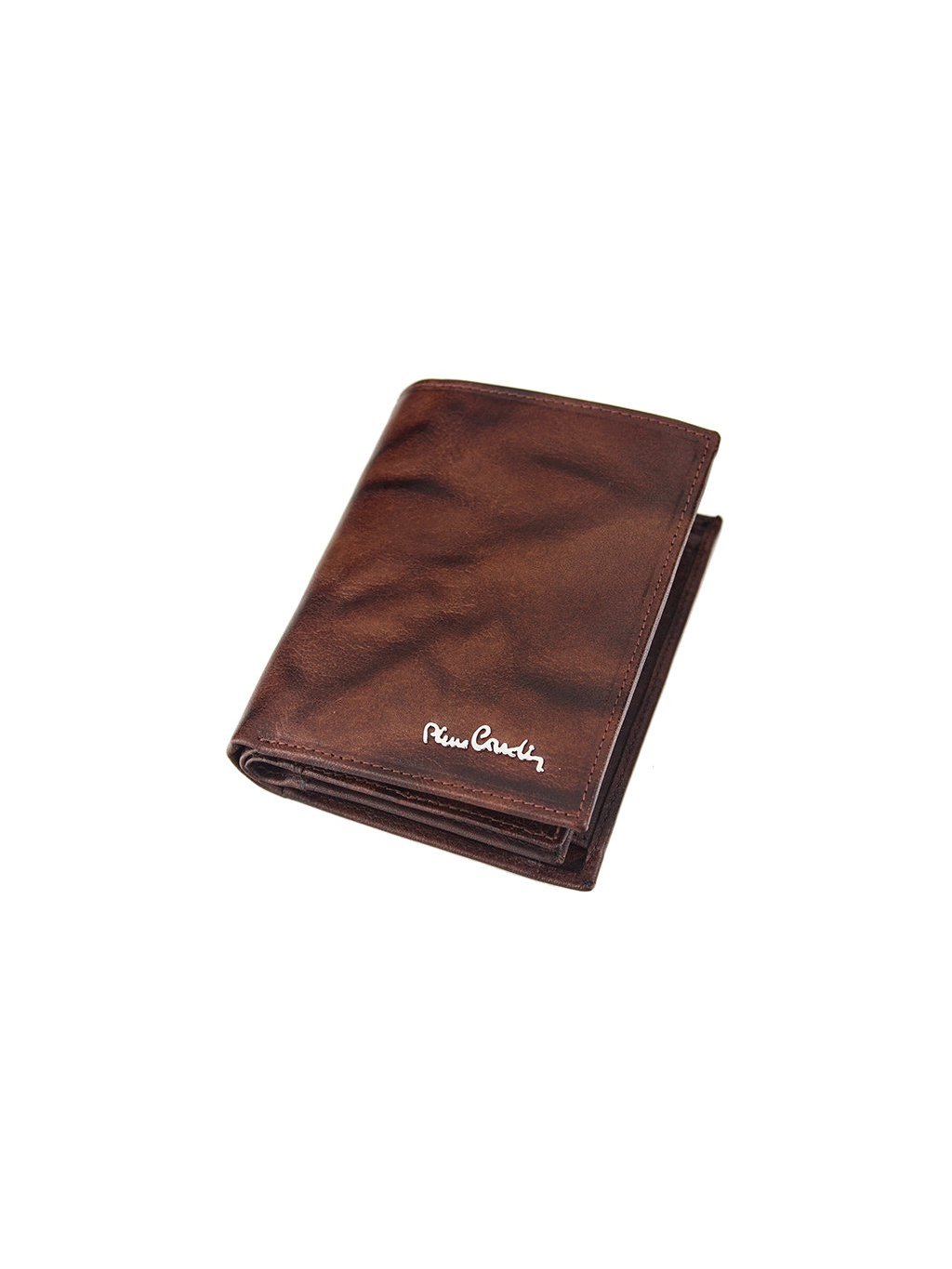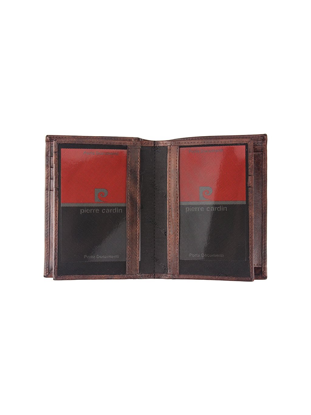 Prostorná pánská peněženka z dílen francouzské módní značky Pierre Cardin, která je ušitá z pravé přírodní měkké hovězí kůže. Peněženka je orientovaná na výšku a je vhodná pro někoho kdo u sebe potřebuje nosit hodně karet a dokladu. Vnitřní část je přehledně členěná. Na pravé straně nalezneme mincovník na drobné mince, který se zavírá drukem. Na levé straně je vodorovná klopna s dostatkem přihrádek pro nejrůznější věrnostní karty, kreditní karty i doklady. Na papírové bankovky má peněženka dva fochy na vrchní straně. Celá peněženka je podšitá látkovou podšívku s vyobrazeným logem francouzské značky. Toto logo rovněž zdobí i přední stranu peněženky. Vše je dodáváno v pevné papírové krabičce.