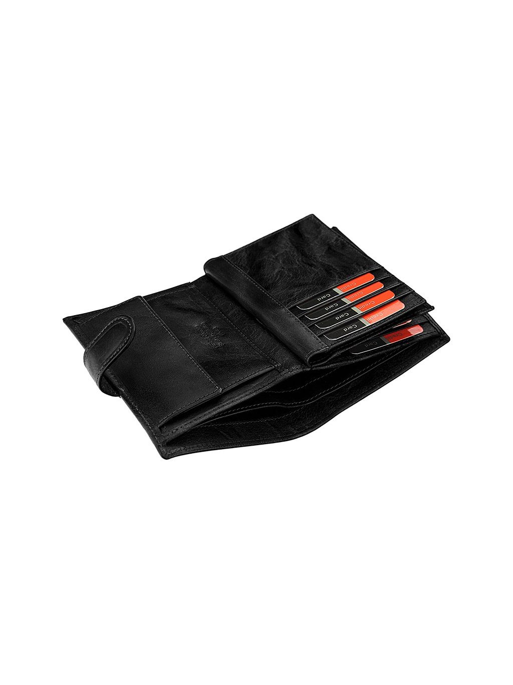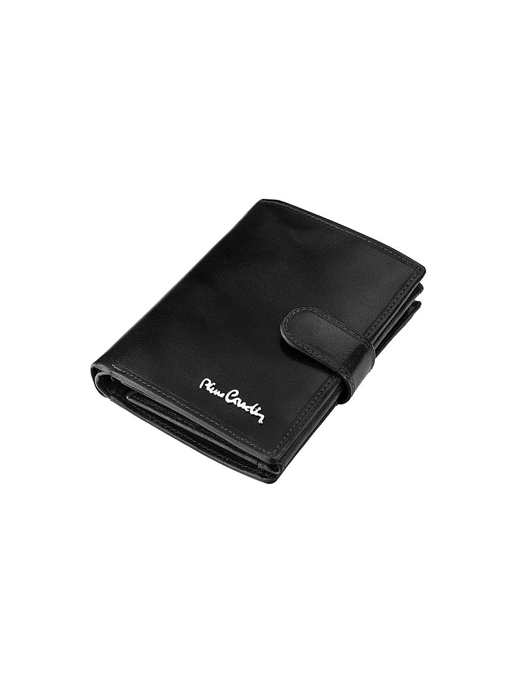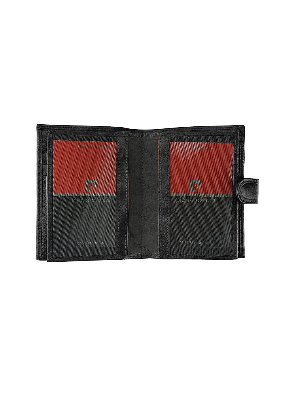 Prostorná pánská peněženka z dílen francouzské módní značky Pierre Cardin, která je ušitá z pravé přírodní měkké hovězí kůže. Peněženka je orientovaná na výšku a je vhodná pro někoho kdo u sebe potřebuje nosit hodně karet a dokladu. Vnitřní část je přehledně členěná. Na pravé straně nalezneme mincovník na drobné mince, který se zavírá drukem. Na levé straně je vodorovná klopna s dostatkem přihrádek pro nejrůznější věrnostní karty, kreditní karty i doklady. Na papírové bankovky má peněženka dva fochy na vrchní straně. Celá peněženka je podšitá látkovou podšívku s vyobrazeným logem francouzské značky. Toto logo rovněž zdobí i přední stranu peněženky. Proti nechtěnému otevření je peněženka vybavena zápinkou na druk. Vše je dodáváno v pevné papírové krabičce.