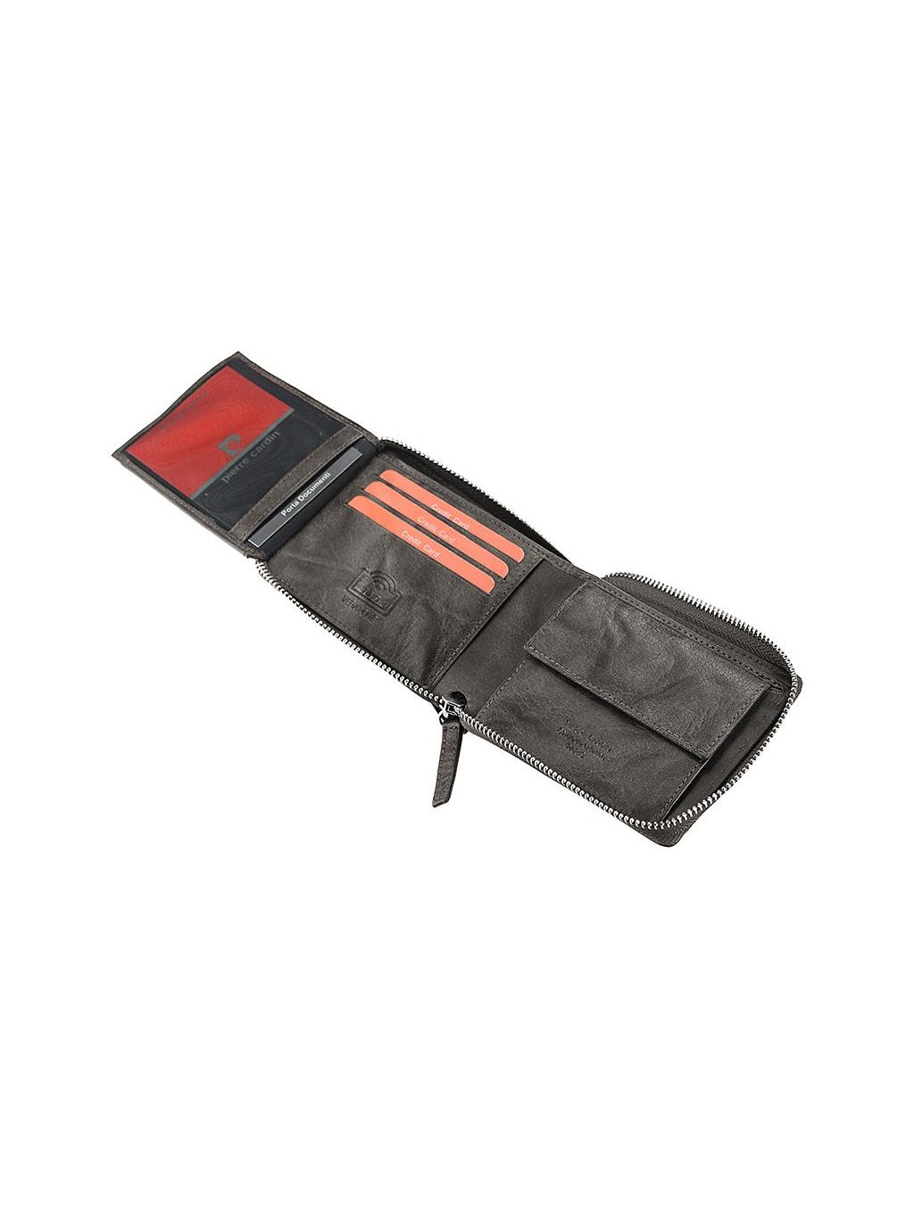 Luxusní pánská kožená peněženka od francouzské značky Pierre Cardin je vyrobena z hladké italské kůže. Výrazným designovým prvkem je stříbrné logo výrobce na přední straně. Peněženka je opatřena zipem po celém obvodu, což zajišťuje, že z ní nic nevypadne. Vnitřní uspořádání zahrnuje dva oddíly na papírové bankovky, mincovník uzavíratelný drukem a přihrádky na doklady a kreditní karty. Podšívka je tmavé barvy s logem francuzské značky. Peněženka je dodávána v elegantní krabičce, což z ní činí ideální volbu jako dárek.