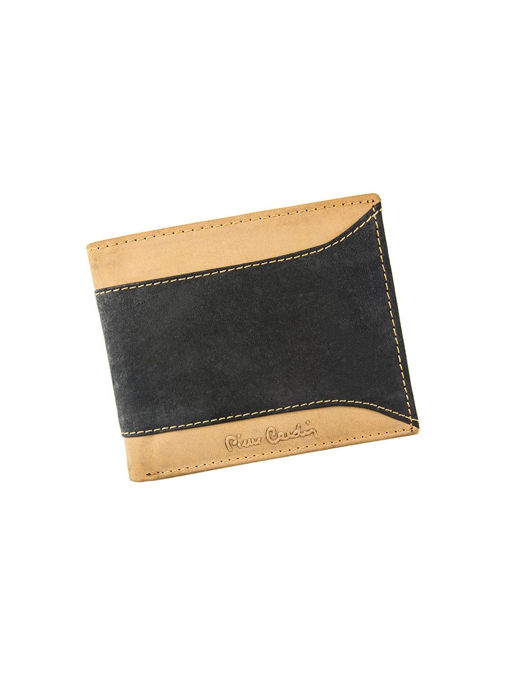 Menší pánská peněženka z dílen francouzské módní značky Pierre Cardin, která je ušitá z pravé přírodní měkké hovězí kůže. Peněženka je orientovaná na šířku. Vnitřní část je přehledně členěná. Na pravé straně nalezneme mincovník na drobné mince, který se zavírá drukem. Na levé straně se nachází přihrádky na kreditní karty, věrnostní karty i doklady. Na papírové bankovky má peněženka dva fochy na vrchní straně. Celá peněženka je podšitá látkovou podšívku s vyobrazeným logem francouzské značky. Peněženka je dodávaná v pevné papírové krabičce. Logo francouzské značky je na přední straně peněženky.