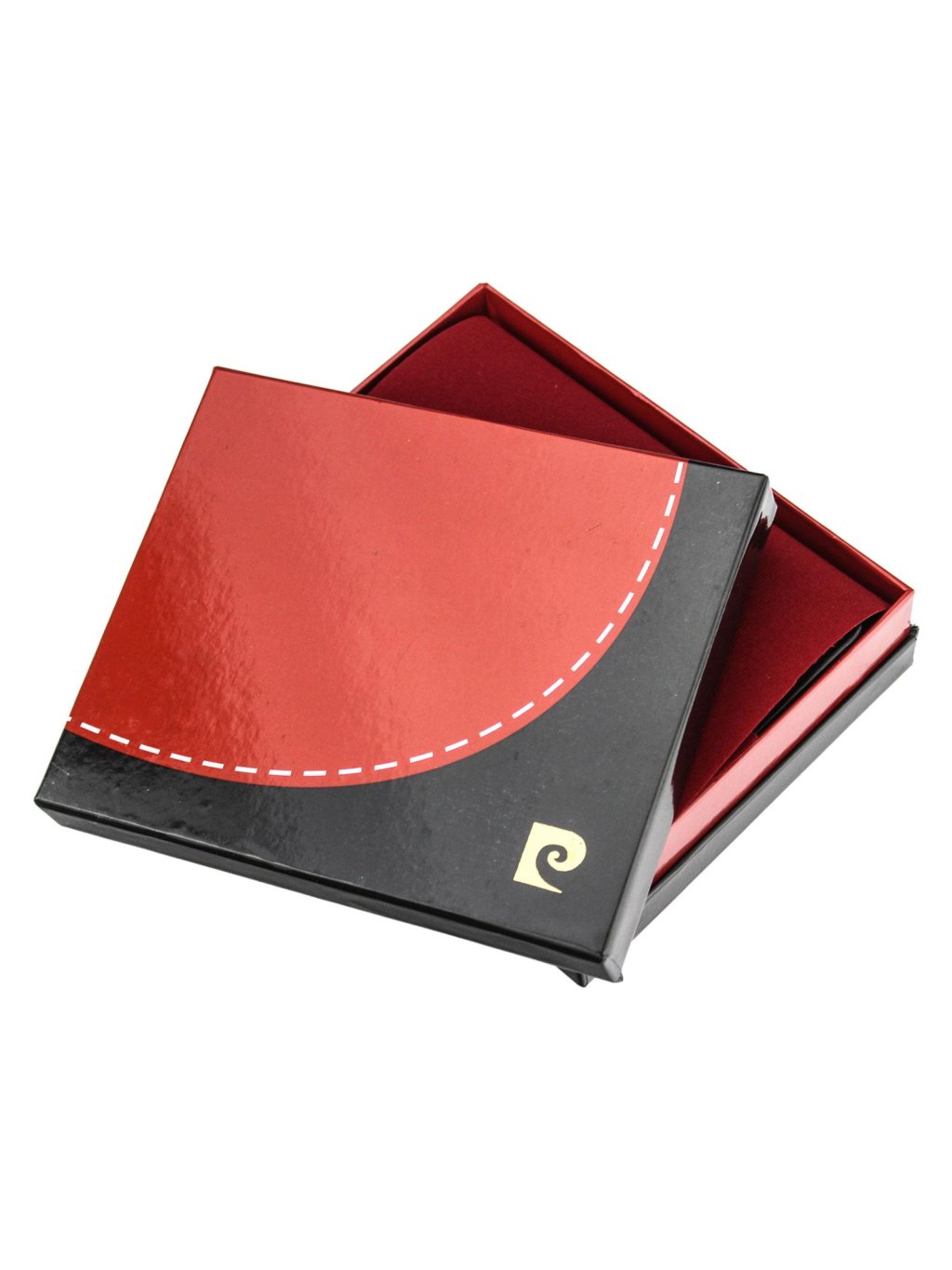 Pánská peněženka Pierre Cardin, ušitá z pravé přírodní hladké kůže, příjemné na omak. Výrazným prvkem této peněženky je zaoblený spodní roh a prošívání červené barvy, které spolu se stříbrným logem firmy Pierre Cardin podtrhuje moderní design. Peněženka je orientovaná na výšku. Uvnitř peněženky se nachází přihrádky na doklady i platební karty, mincovník na druk a zipem uzavíratelná malá kapsička, fochy na papírové bankovky nalezneme na její vrchní straně.