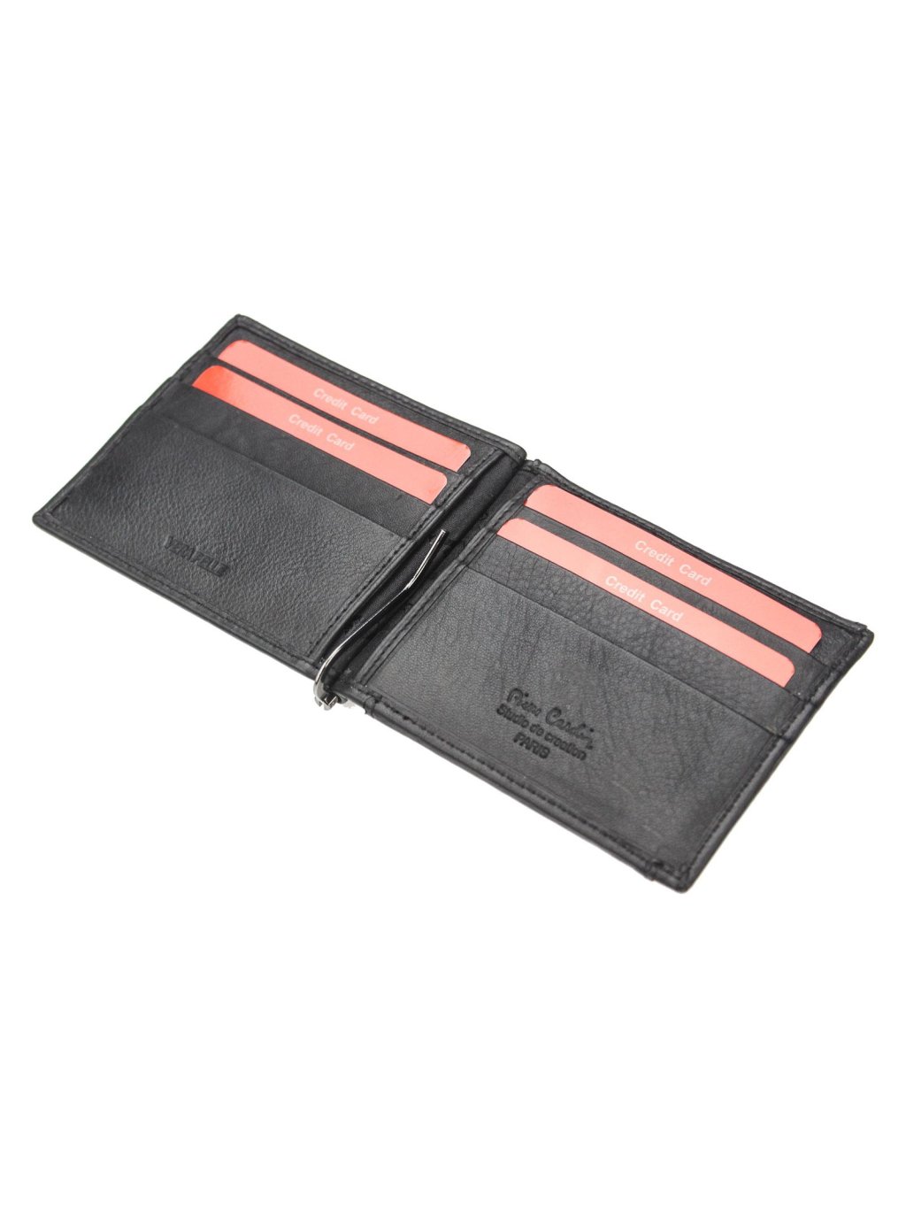 Pánská kožená dolarovka z provenience francouzské módní značky Pierre Cardin ušita z přírodní hovězí kůže. Na přední straně dolarovky nalezneme vyražené logo výrobce. Uvnitř nalezneme stříbrnou sponu pro uchycení papírových bankovek a praktické přihrádky pro uložení kreditních karet a dokladů.