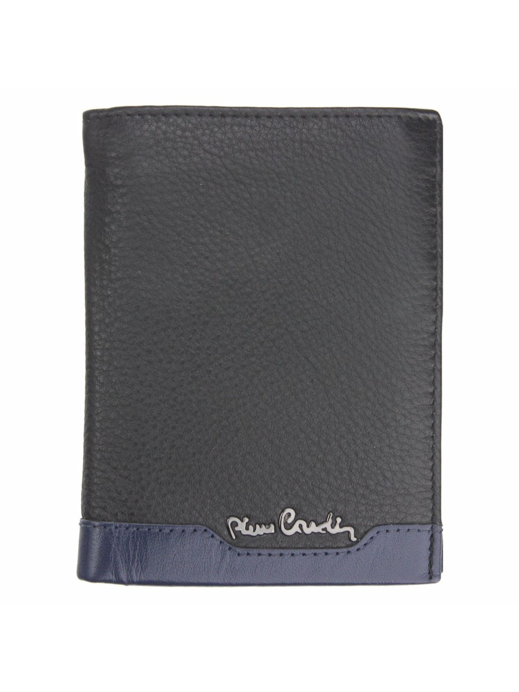 Pánská peněženka z provenience známé francouzské značky Pierre Cardin, ušitá z pravé přírodní měkké kůže příjemné na omak. Výrazným prvkem této peněženky je široký pruh modré barvy na spodní straně, který má vykrojení pro stříbrné logo francouzské značky. Peněženka je orientovaná na výšku. Uvnitř peněženky se nachází přihrádky na doklady i platební karty, mincovník na druk a zipem uzavíratelná malá kapsička, fochy na papírové bankovky nalezneme na její vrchní straně.