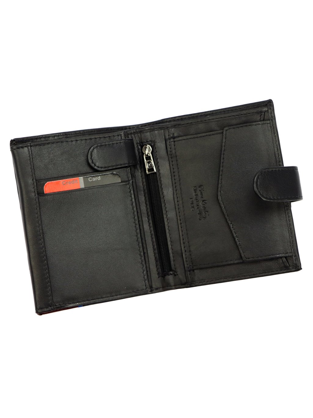 Pánská kožená na výšku orientovaná peněženka značky Pierre Cardin. Uvnitř peněženky najdete malou kapsičku na mince se zapínáním na druk či zip, přihrádky na doklady, věrnostní karty a kreditní karty. V horní části peněženky jsou fochy na papírové bankovky, které jsou podšité látkovou podšívkou. Peněženka je ušita z kvalitní pravé kůže a po obvodu prošita silnou nití, což zvyšuje její odolnost. Praktická zápinka na druk zajistí, že z peněženky nic nevypadne. Peněženka je dodávaná v papírové krabičce, díky které se z ní může stát úžasný dárek.