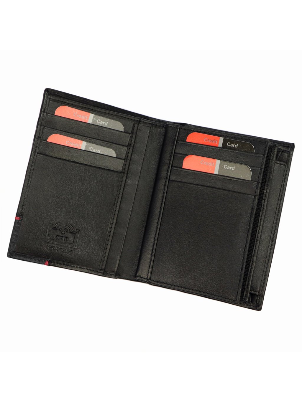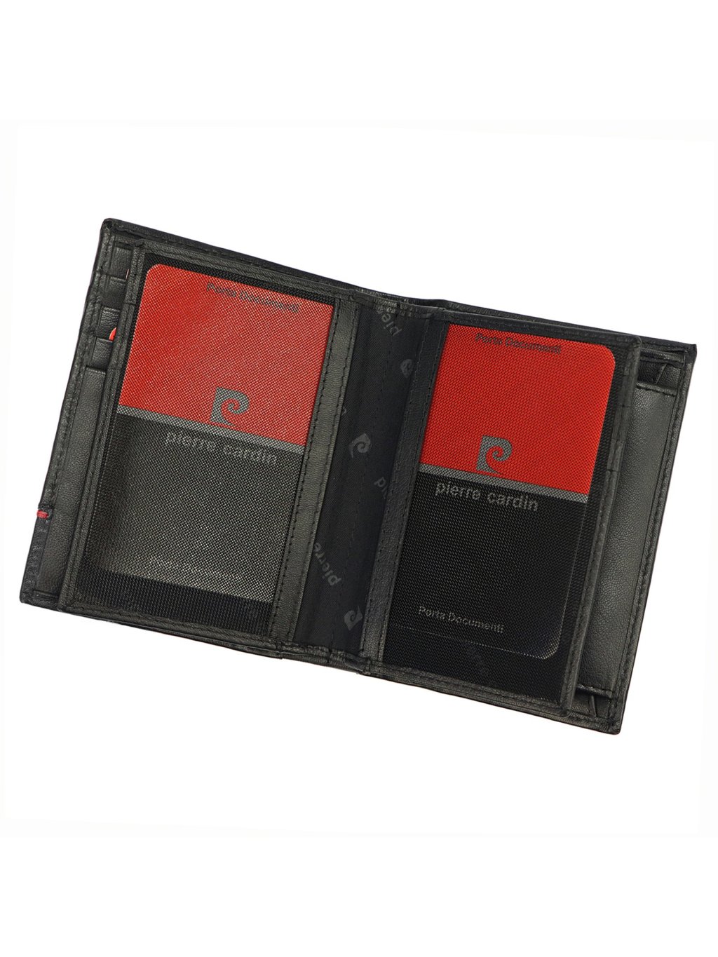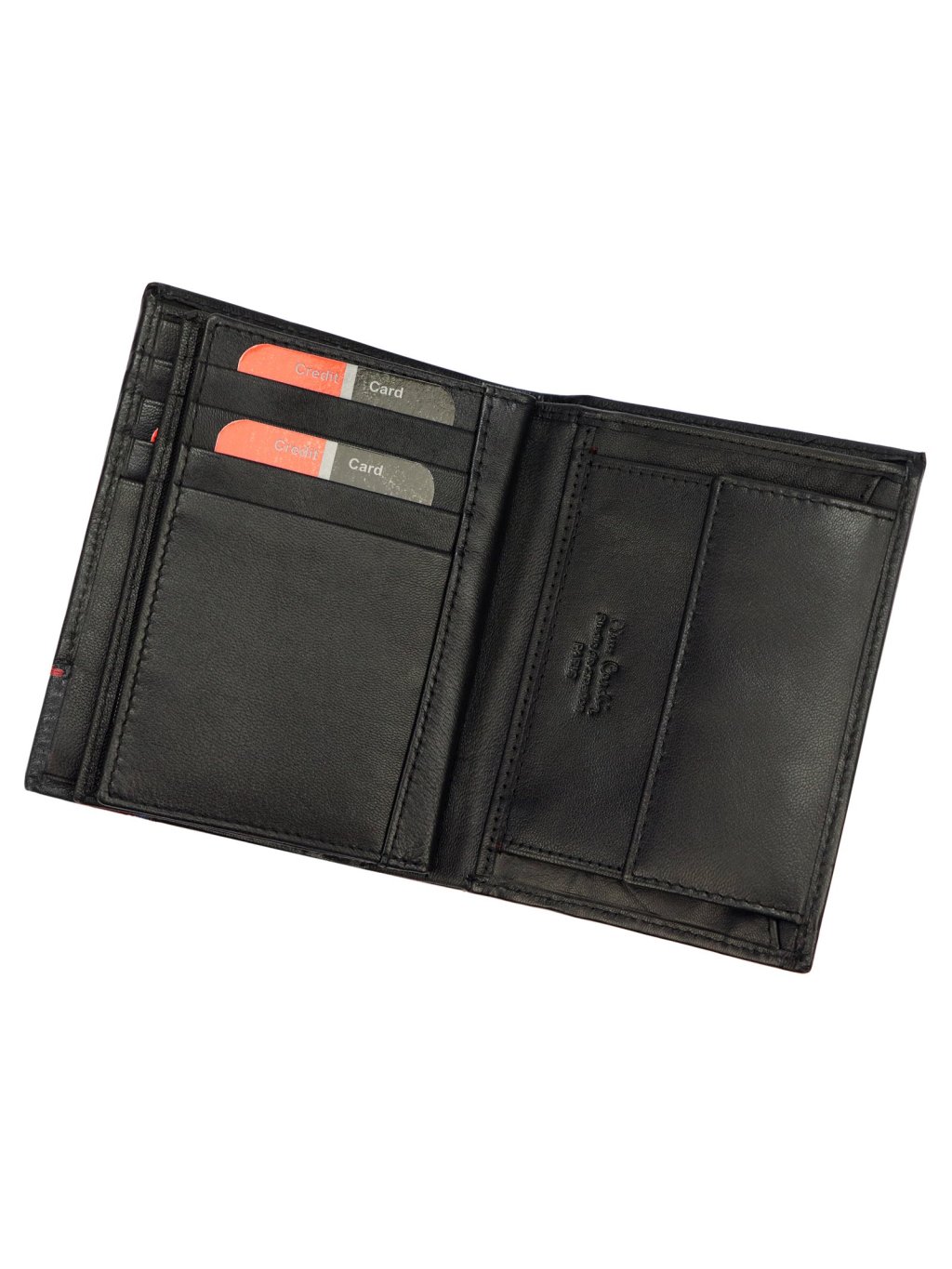 Pánská kožená na výšku orientovaná peněženka značky Pierre Cardin. Uvnitř peněženky najdete malou kapsičku na mince se zapínáním na druk, přihrádky na doklady, věrnostní karty a kreditní karty. V horní části peněženky jsou fochy na papírové bankovky, které jsou podšité látkovou podšívkou. Peněženka je ušita z kvalitní pravé kůže a po obvodu prošita silnou nití, což zvyšuje její odolnost. Peněženka je dodávaná v papírové krabičce, díky které se z ní může stát úžasný dárek.