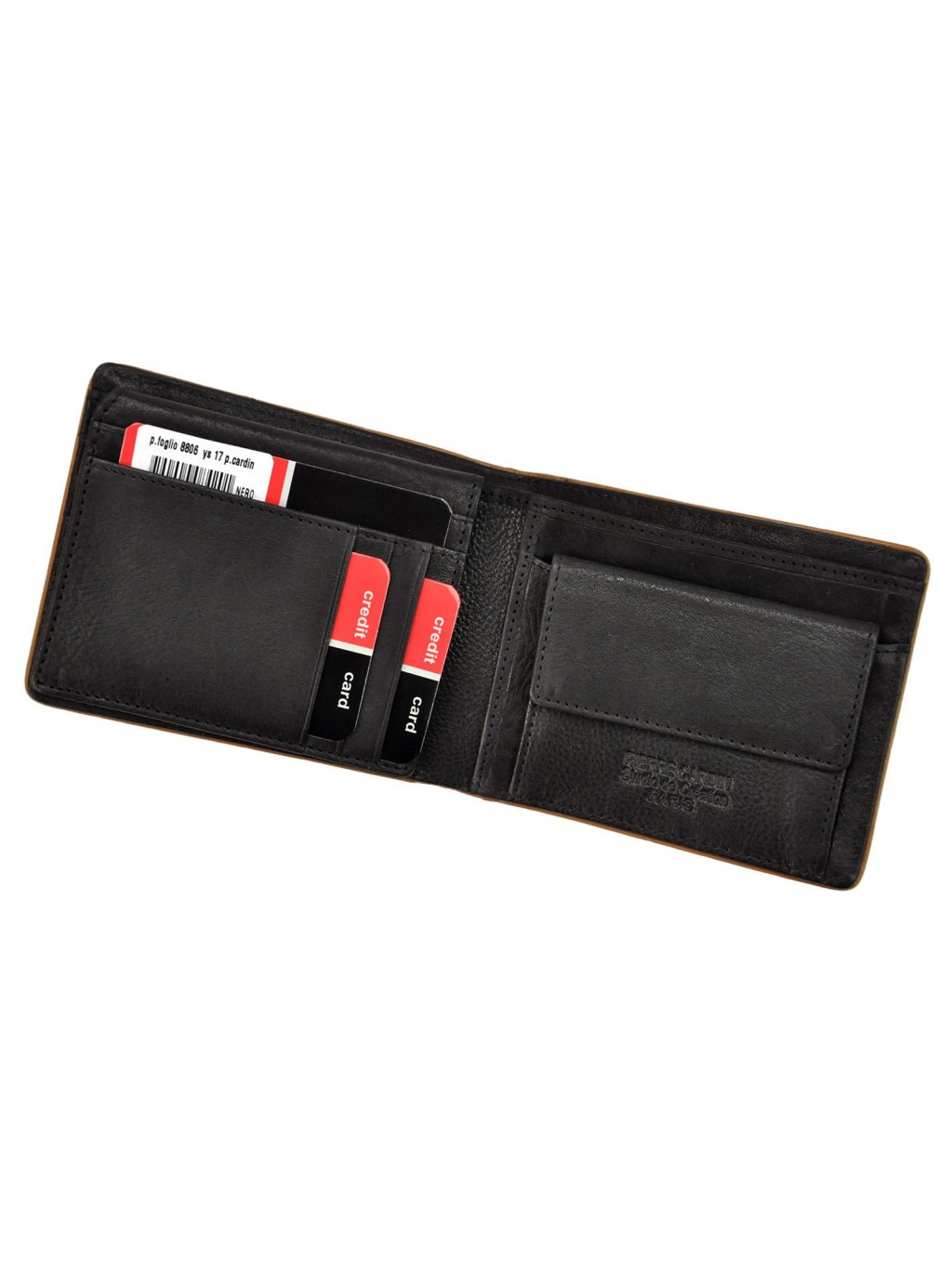 Pánská kožená na šířku orientovaná peněženka značky Pierre Cardin. Uvnitř peněženky najdete kapsičku na mince se zapínáním na druk, přihrádky na doklady, věrnostní i kreditní malou karty. V horní části peněženky jsou fochy na papírové bankovky, které jsou podšité látkovou podšívkou. Peněženka je ušita z kvalitní pravé kůže a po obvodu prošita silnou nití, což zvyšuje její odolnost. Peněženka je dodávaná v papírové krabičce, díky které se z ní může stát úžasný dárek.