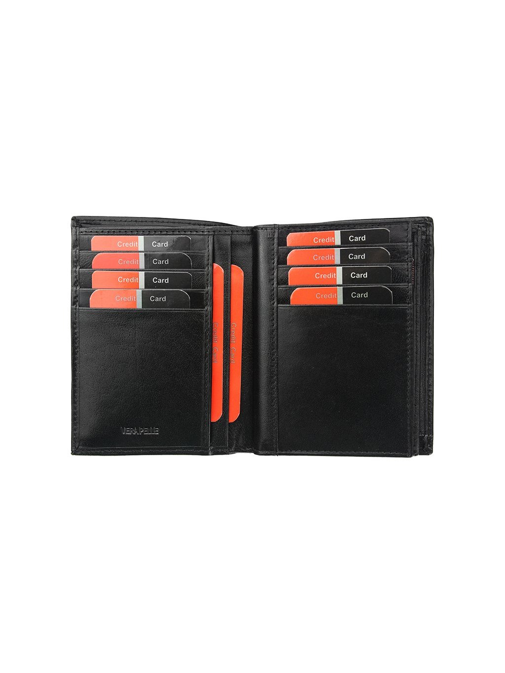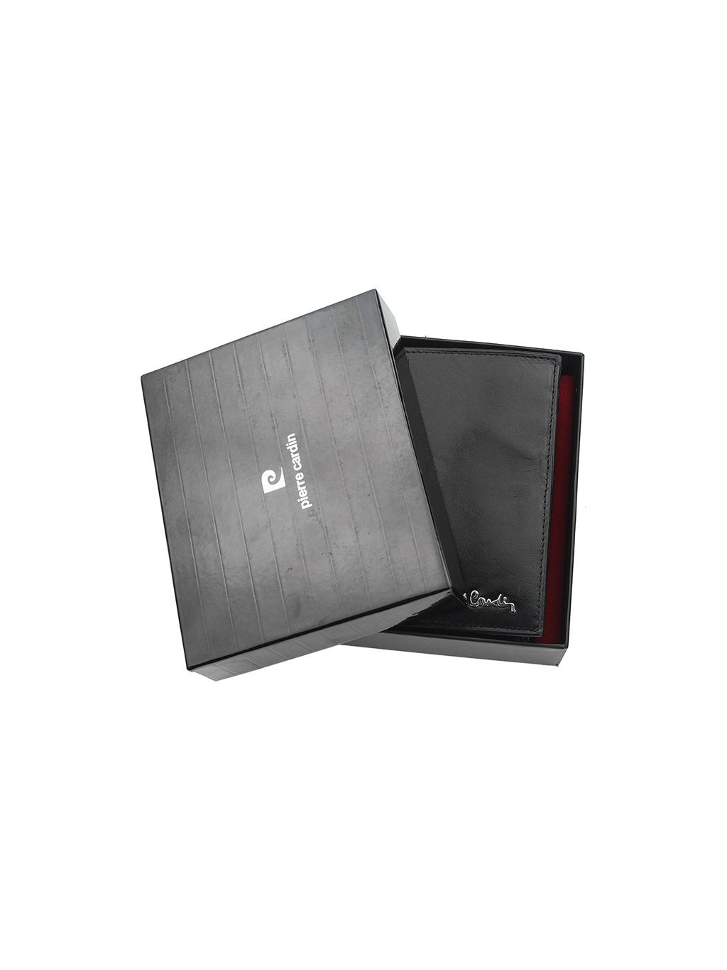 Prostorná pánská peněženka z dílen francouzské módní značky Pierre Cardin, která je ušitá z pravé přírodní měkké hovězí kůže. Peněženka je orientovaná na výšku a je vhodná pro někoho kdo u sebe potřebuje nosit hodně karet a dokladu. Vnitřní část je přehledně členěná. Na pravé straně nalezneme mincovník na drobné mince, který se zavírá drukem. Na levé straně je vodorovná klopna s dostatkem přihrádek pro nejrůznější věrnostní karty, kreditní karty i doklady. Na papírové bankovky má peněženka dva fochy na vrchní straně. Celá peněženka je podšitá látkovou podšívku s vyobrazeným logem francouzské značky. Toto logo rovněž zdobí i přední stranu peněženky. Vše je dodáváno v pevné papírové krabičce.