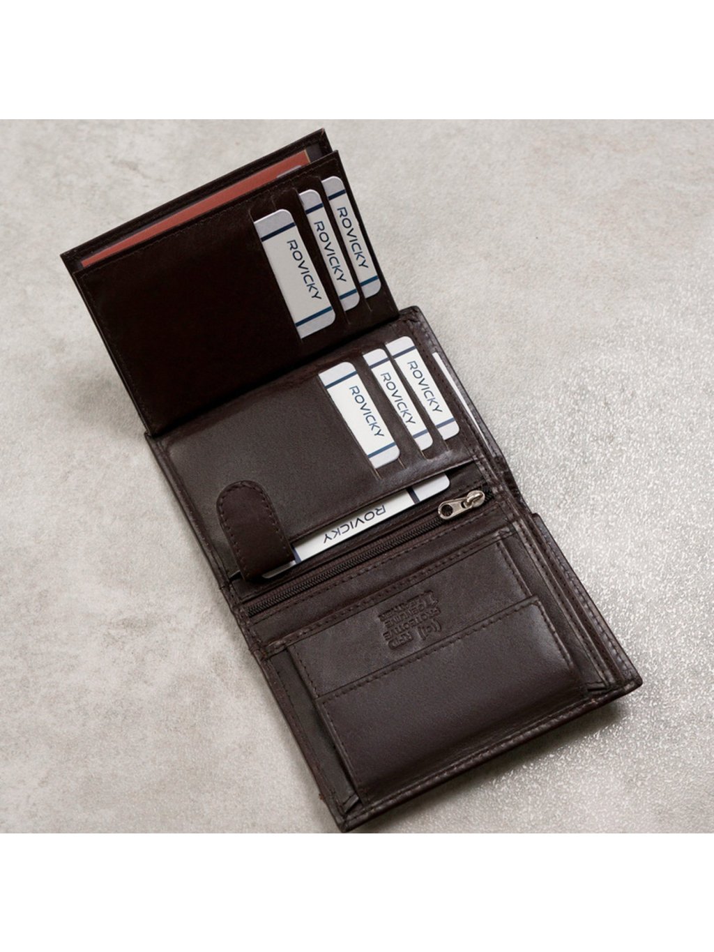 Pánská peněženka ušitá z pravé přírodní hovězí kůže s dostatkem místa pro doklady, věrnostní i platební karty.