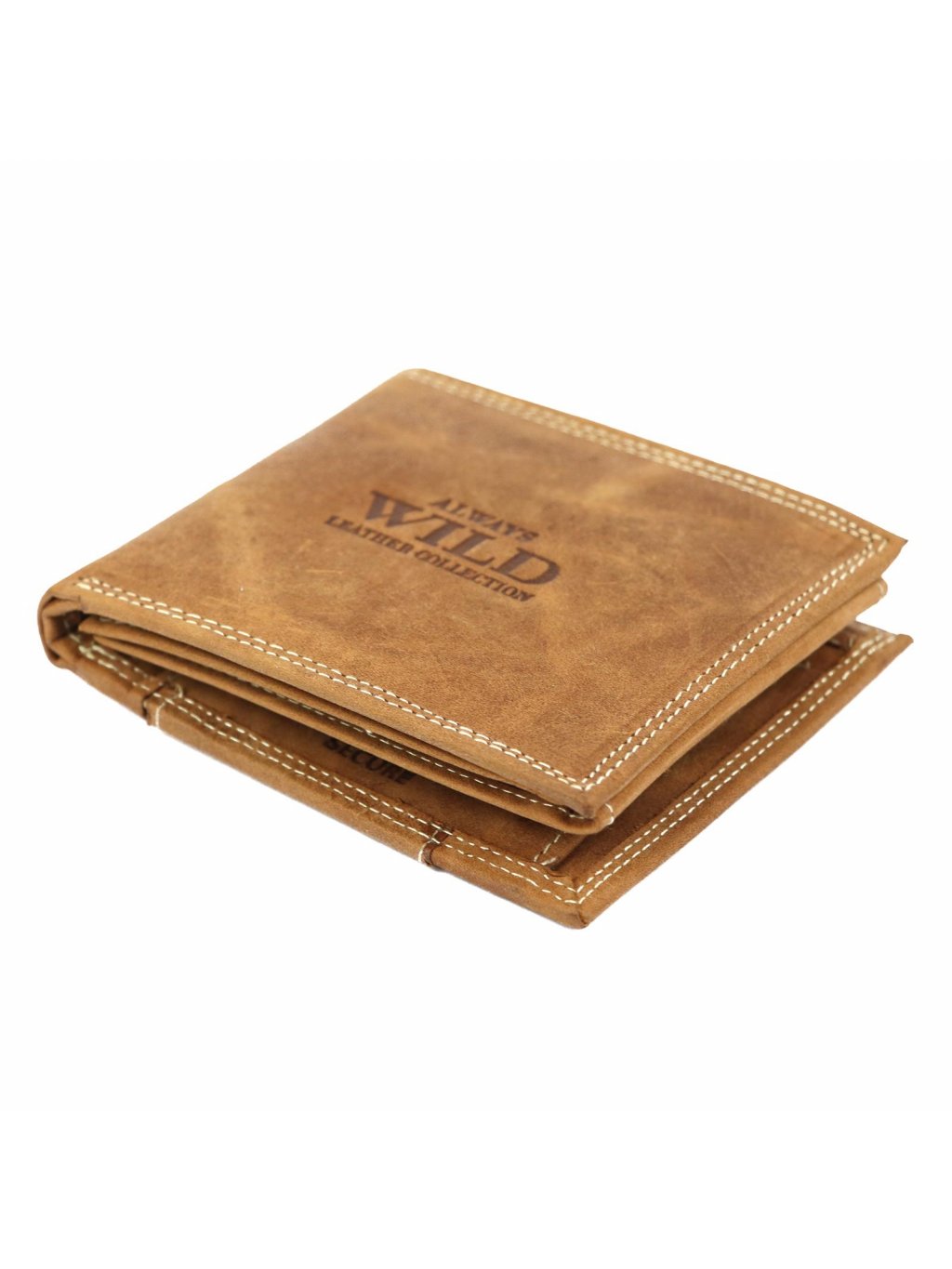 Pánská kožená na šířku orientovaná peněženka značky Wild. Uvnitř peněženky najdete kapsičku na mince se zapínáním na druk, přihrádky na doklady, věrnostní i kreditní malou karty. V horní části peněženky jsou fochy na papírové bankovky, které jsou podšité látkovou podšívkou. Peněženka je ušita z kvalitní pravé kůže a po obvodu prošita silnou nití, což zvyšuje její odolnost. Peněženka je dodávaná v papírové krabičce, díky které se z ní může stát úžasný dárek.