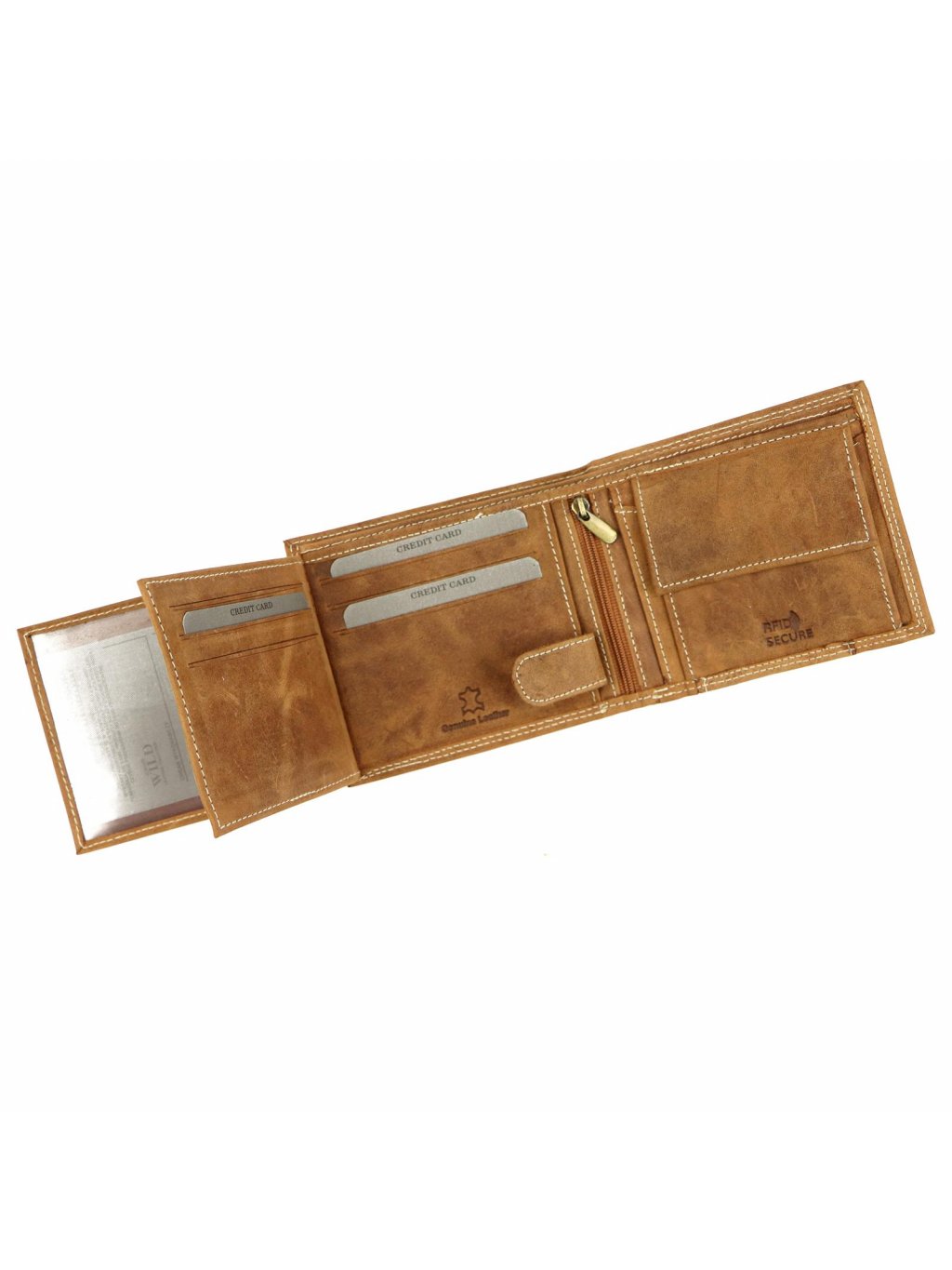 Pánská peněženka ušitá z pravé přírodní hovězí kůže s dostatkem místa pro doklady, věrnostní i platební karty.
