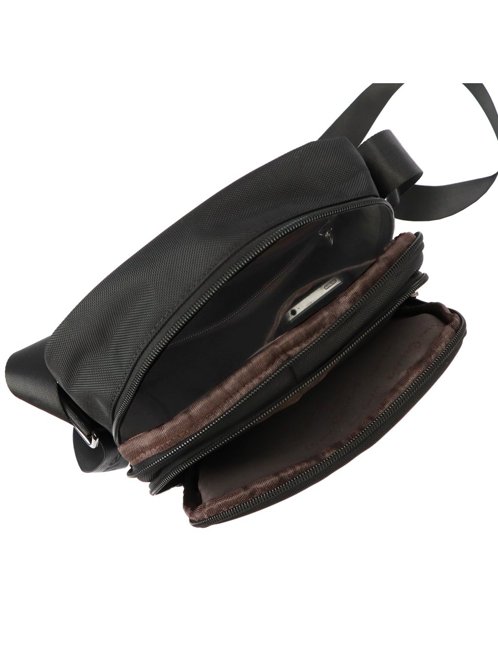 Tato pánská taška přes rameno francouzské značky Pierre Cardin je vyrobená z tkané textilie a polyesteru. Hlavní kapsa se uzavírá zipem a po jeho rozepnutí Vám nabídne hlavní kapsu podšitou látkou. Vnitřní prostor je nedělený a po jeho stranách najdete otevřenou kapsu na drobnosti. Další kapsy na zip najdete na přední a zadní straně tašky. Součástí tašky je nastavitelný popruh přes rameno, který je vyroben z nylonu.