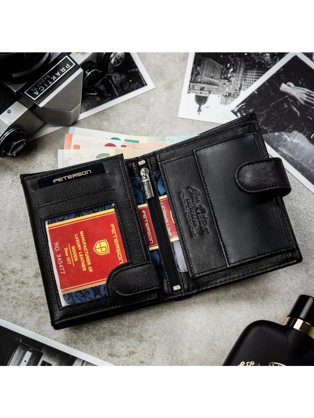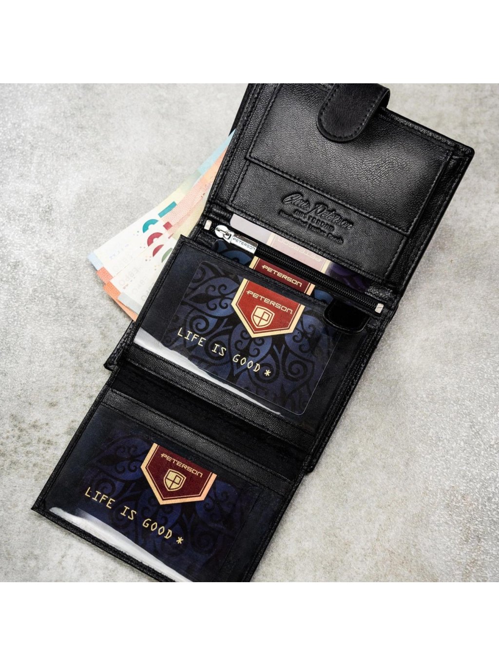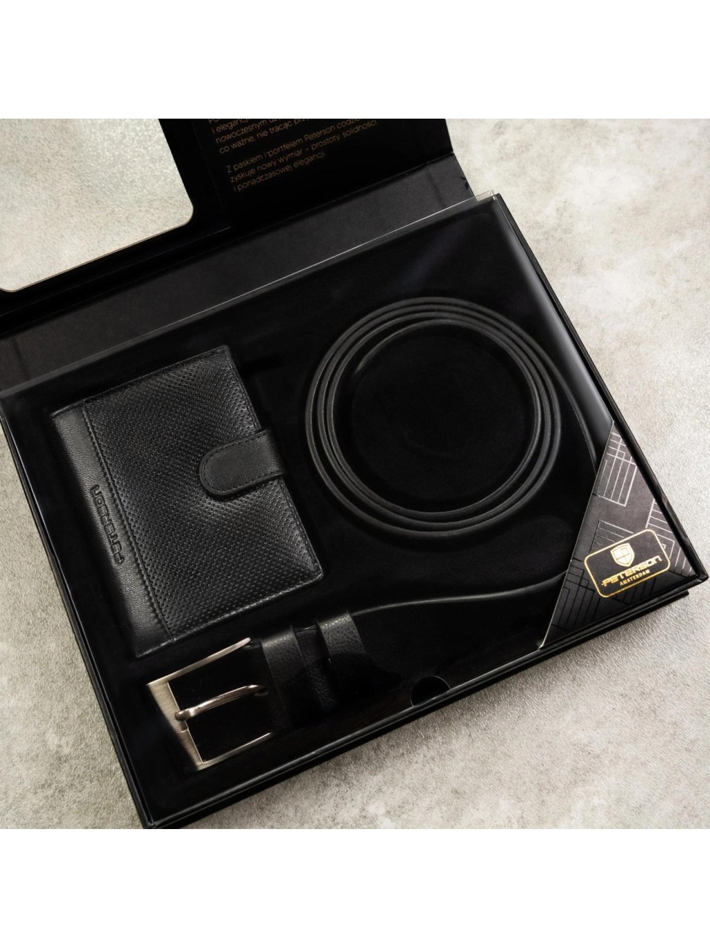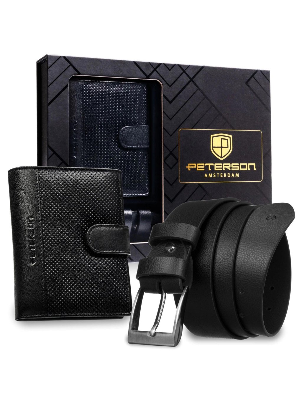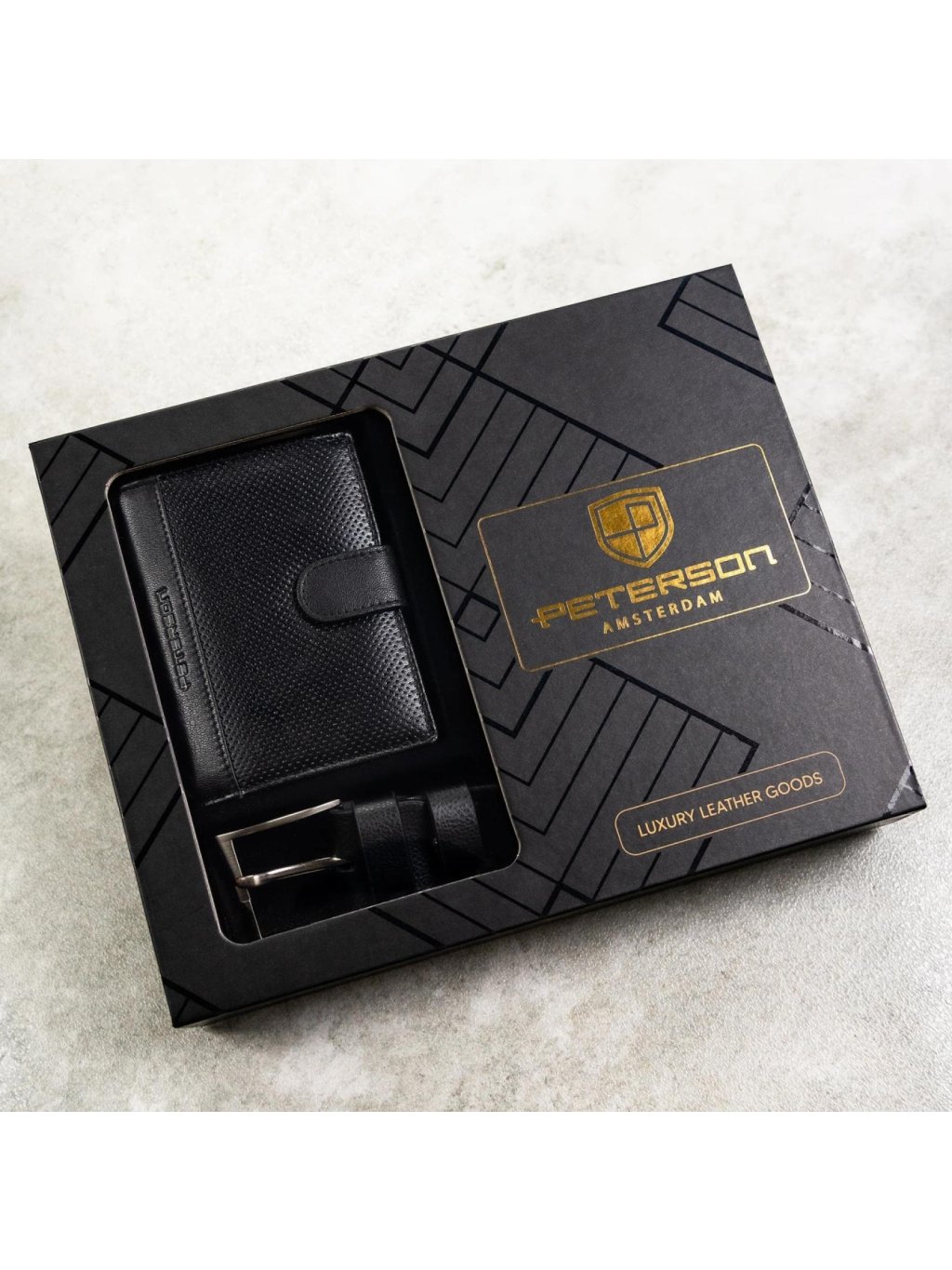 Elegantní dárková sada Peterson s koženou peněženkou a páskem v černém provedení, vhodná jako praktický a stylový dárek.
