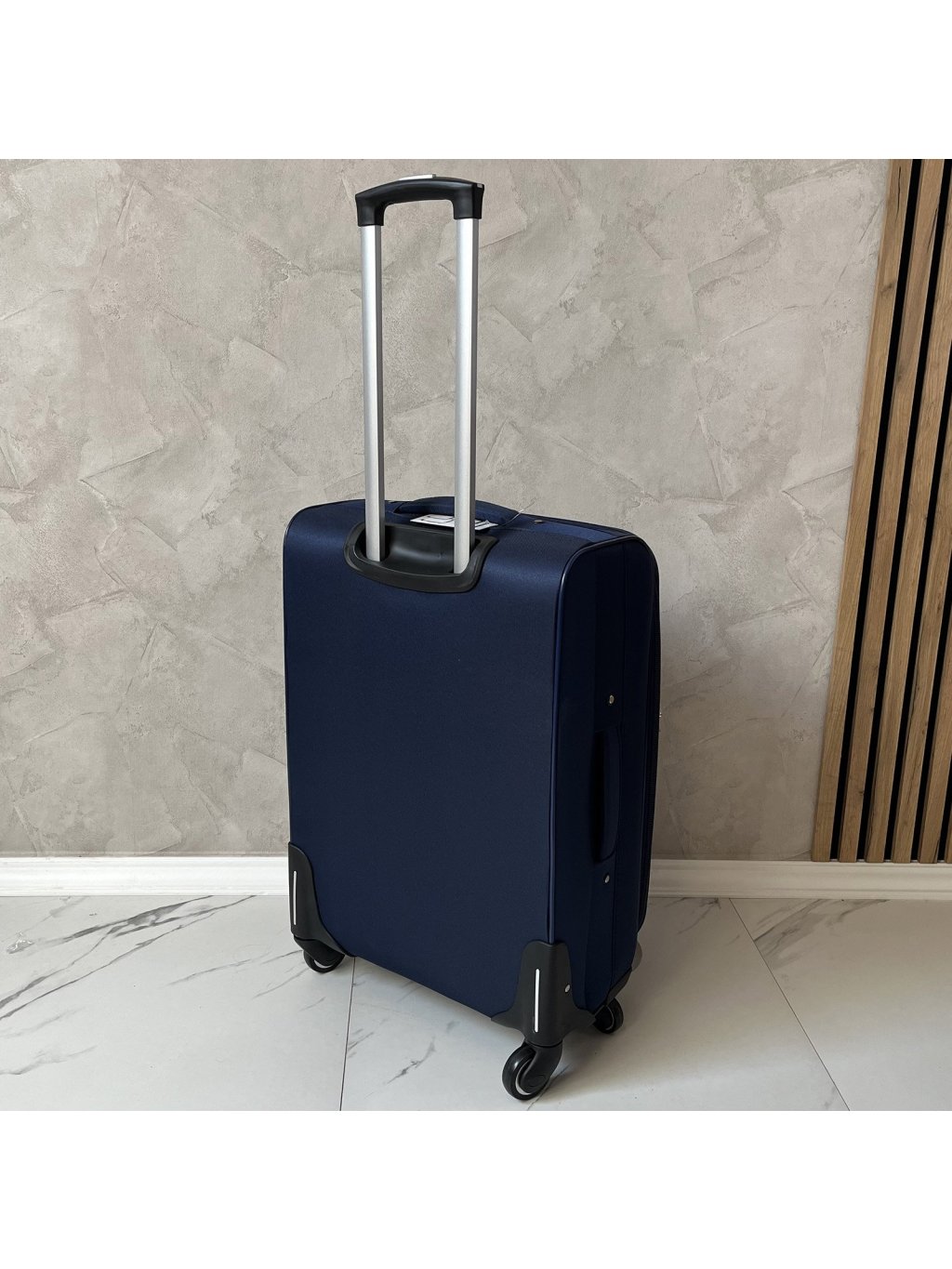 Praktická sada cestovních kufrů vyrobená z textilního materiálu, který je rezistentní vůči oděru a ideální pro časté cestování. Každý kufr je vybaven čtyřmi otočnými kolečky pro plynulý pohyb v jakémkoliv směru a teleskopickou výsuvnou rukojetí s ergonomickým úchopem, která zajišťuje pohodlné vedení i na delších trasách. Vnitřní prostor tvoří prostorná hlavní komora uzavíratelná na zip, kterou doplňují praktické vnější kapsy pro rychlý přístup k dokumentům, elektronice nebo drobným předmětům. Zpevněné rohy a robustní zipy zvyšují celkovou odolnost a bezpečnost při přepravě. Sada obsahuje tři velikosti, díky nimž je vhodná jak na víkendové výlety, tak na delší dovolenou.