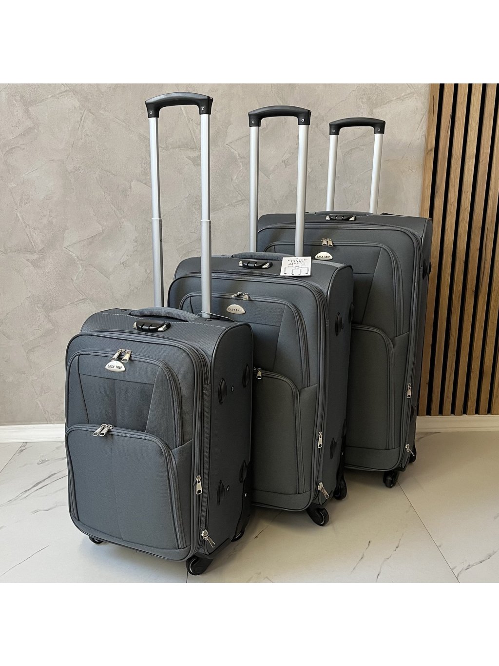 Sada tří textilních cestovních kufrů na čtyřech kolečkách EASY TRIP