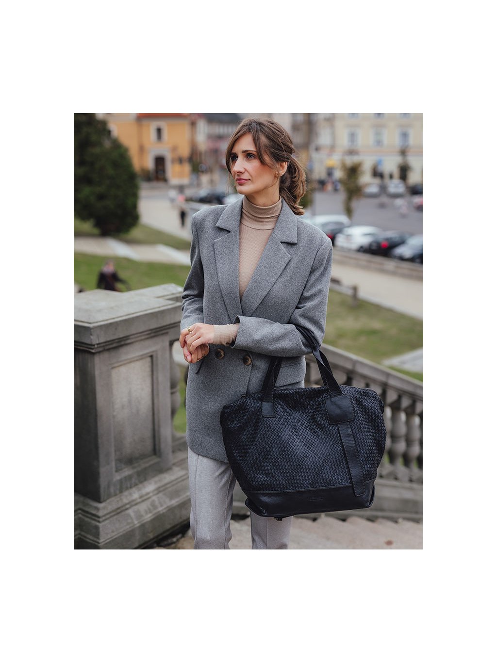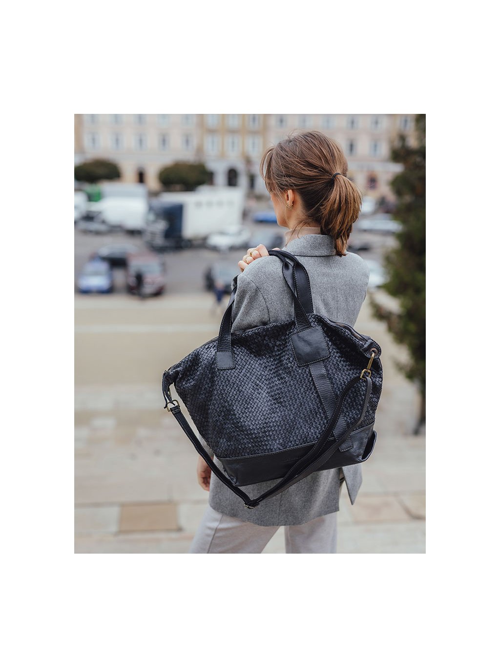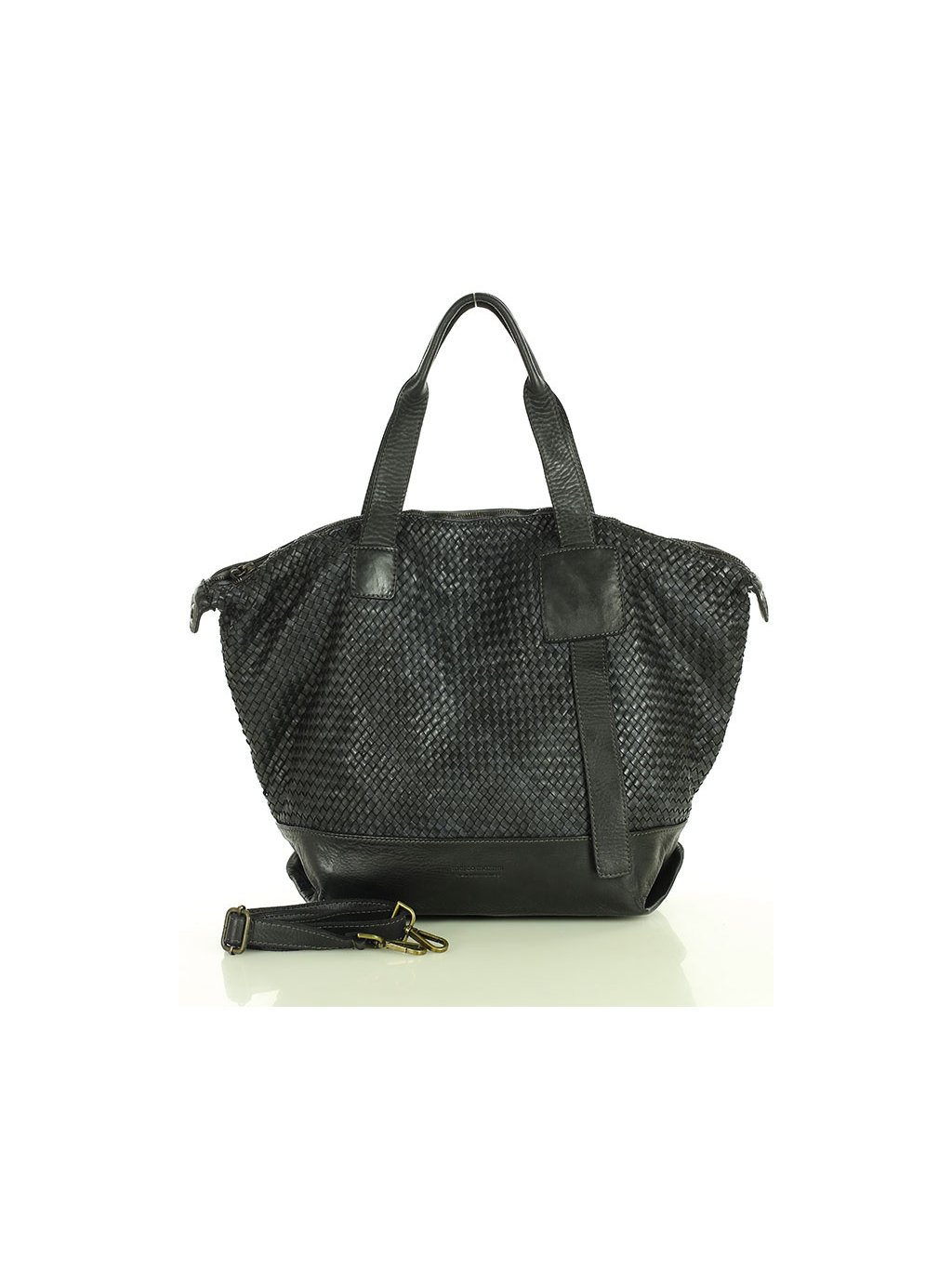 Prostorná dámská shopper kabelka z přírodní kůže zaujme nadčasovým vzhledem a vysokou funkčností pro každodenní nošení. Model je vyroben z měkké, ručně pletené kůže, která dodává kabelce originální strukturu, vyšší odolnost a charakter jemného vintage stylu. Prostorný interiér nabízí dostatek místa pro pracovní i osobní nezbytnosti a je doplněn praktickým členěním v podobě vnitřní kapsy na zip, otevřené kapsy a zadní vnější kapsy pro rychlý přístup k drobnostem. Kabelka je vybavena pevnými uchy pro pohodlné nošení v ruce i nastavitelným ramenním popruhem umožňujícím nošení přes rameno nebo křížem. Vnitřní část je podšitá textilní podšívkou. Ruční zpracování, tradiční kožedělné postupy a výroba v Itálii zaručují dlouhou životnost, přirozený vzhled kůže a elegantní městský charakter vhodný do práce i pro volný čas.