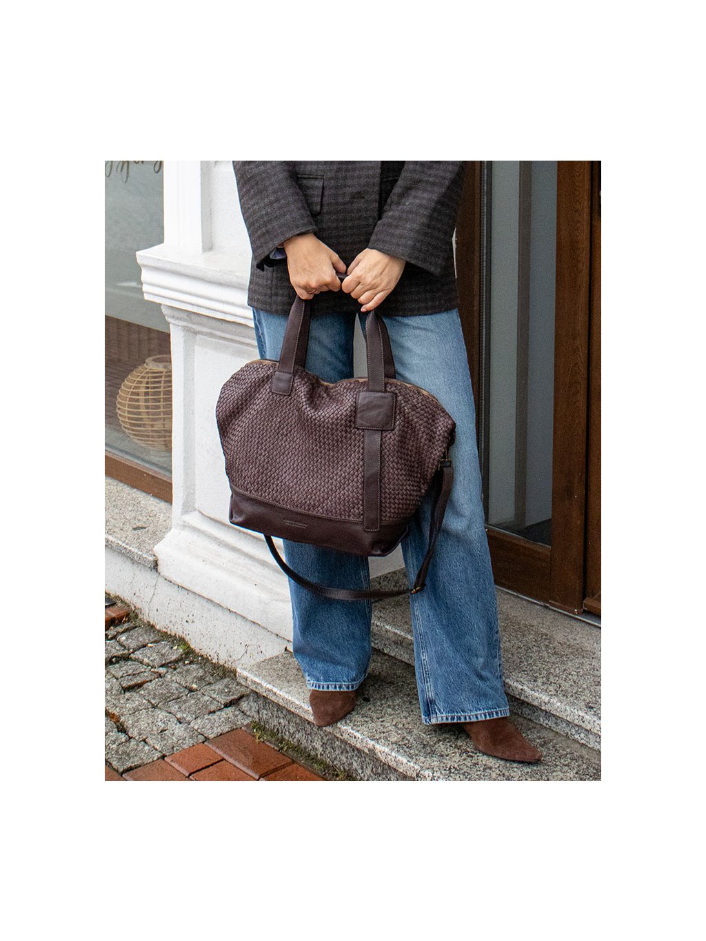 Prostorná dámská shopper kabelka z přírodní kůže zaujme nadčasovým vzhledem a vysokou funkčností pro každodenní nošení. Model je vyroben z měkké, ručně pletené kůže, která dodává kabelce originální strukturu, vyšší odolnost a charakter jemného vintage stylu. Prostorný interiér nabízí dostatek místa pro pracovní i osobní nezbytnosti a je doplněn praktickým členěním v podobě vnitřní kapsy na zip, otevřené kapsy a zadní vnější kapsy pro rychlý přístup k drobnostem. Kabelka je vybavena pevnými uchy pro pohodlné nošení v ruce i nastavitelným ramenním popruhem umožňujícím nošení přes rameno nebo křížem. Vnitřní část je podšitá textilní podšívkou. Ruční zpracování, tradiční kožedělné postupy a výroba v Itálii zaručují dlouhou životnost, přirozený vzhled kůže a elegantní městský charakter vhodný do práce i pro volný čas.