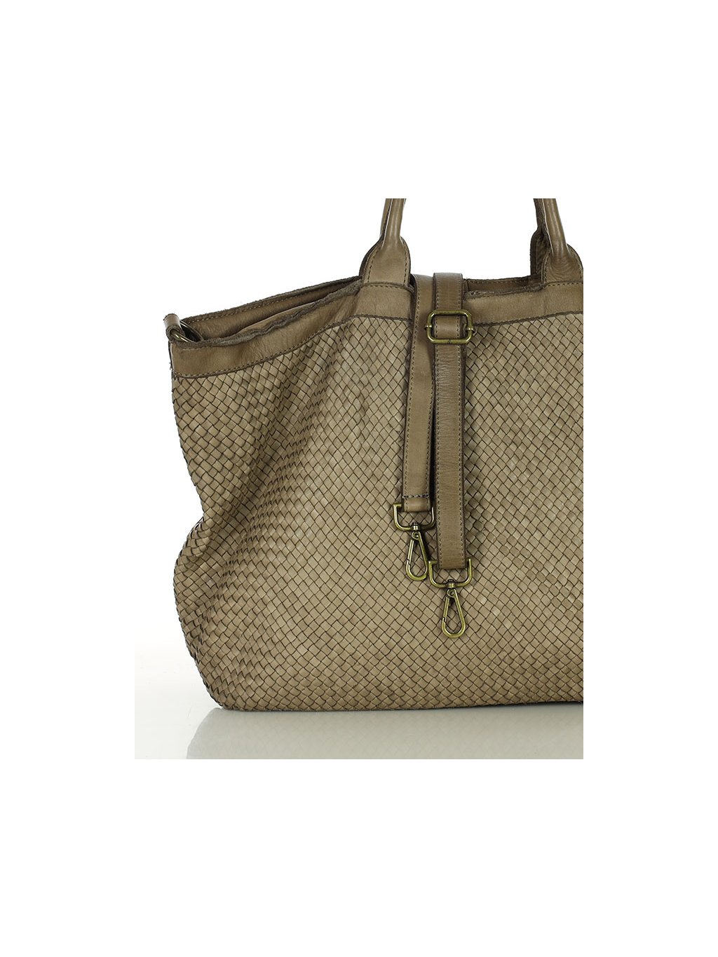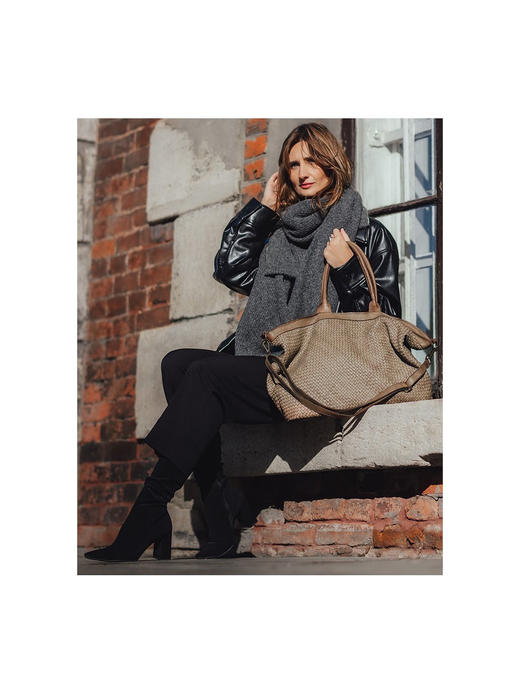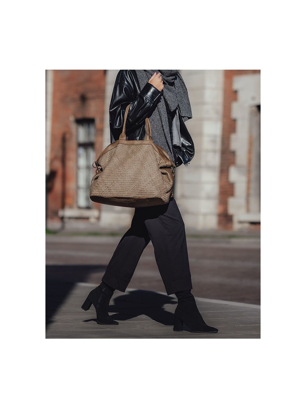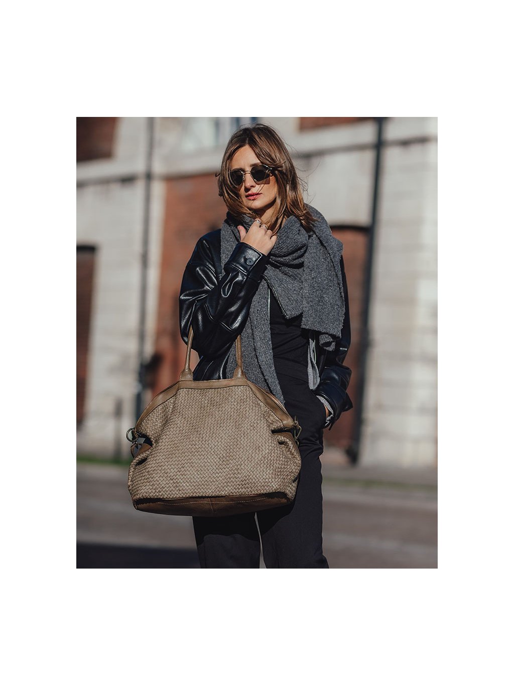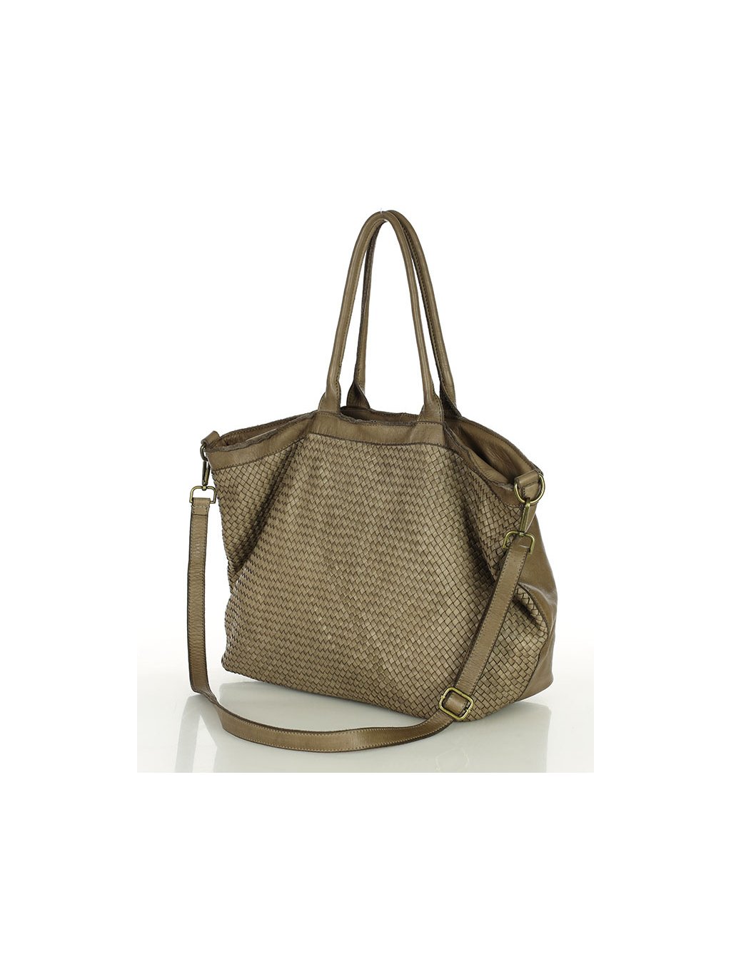 Velká dámská kožená shopper kabelka spojuje italský design s praktičností pro každodenní nošení. Kombinace pletené kůže na přední straně a hladké kůže na zadní části působí elegantně a nadčasově. Pevná ucha a nastavitelný ramenní popruh umožňují pohodlné nošení v ruce i přes rameno. Prostorný interiér s kapsami na drobnosti je doplněn bavlněnou podšívkou pro vyšší komfort při používání. Kabelka nabízí dostatek prostoru pro všechny nezbytnosti a snadno se přizpůsobí různým outfitům i příležitostem.