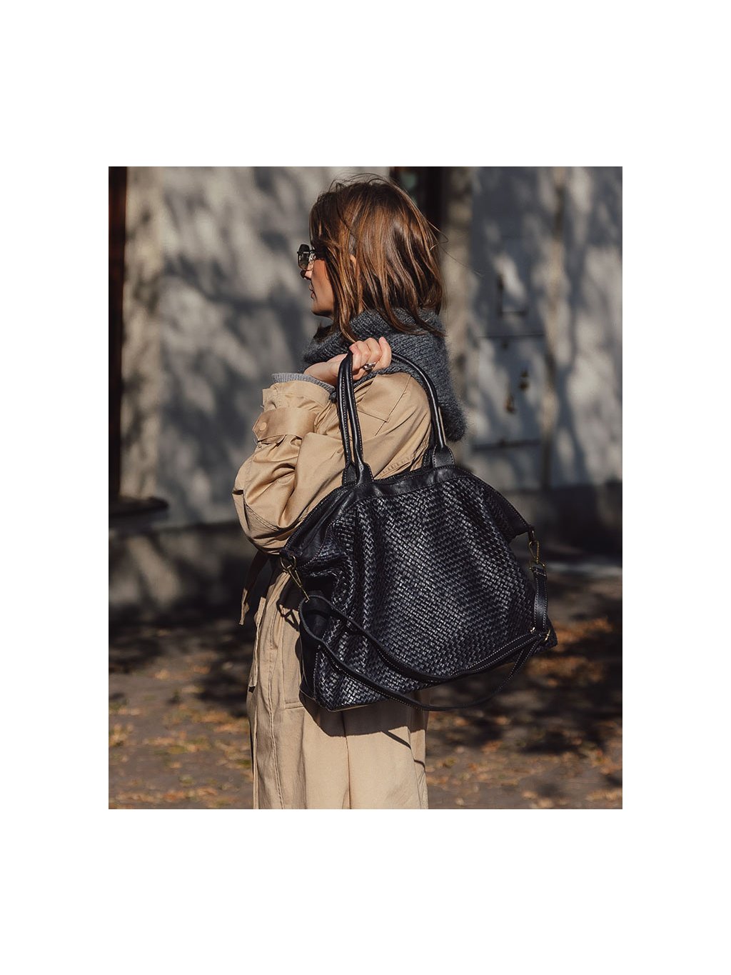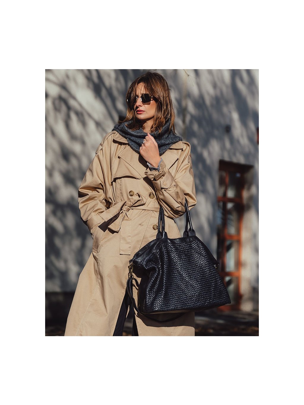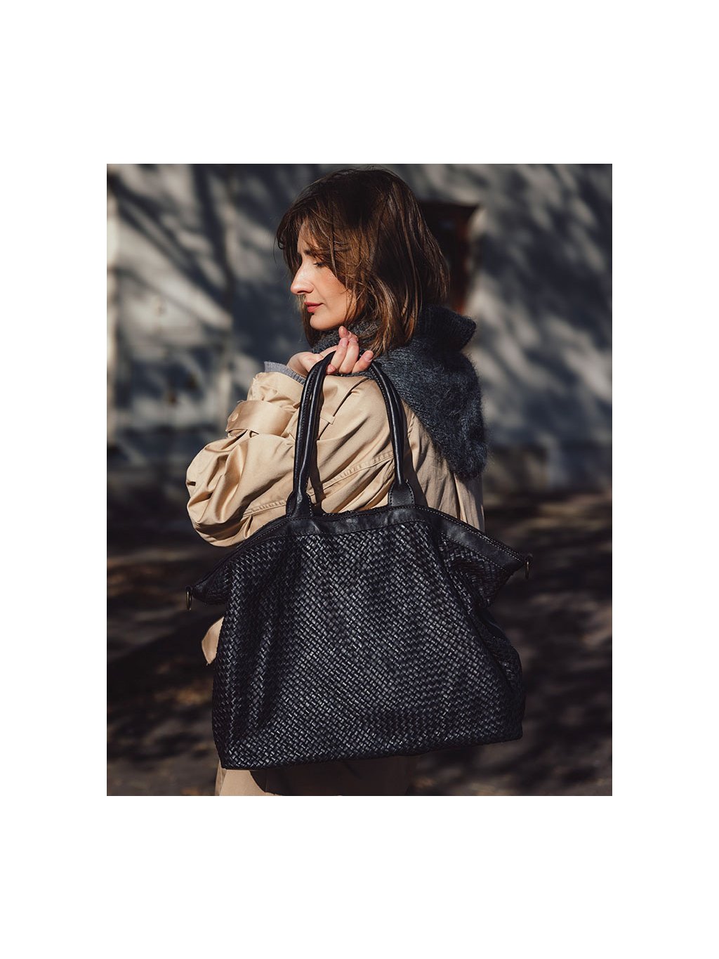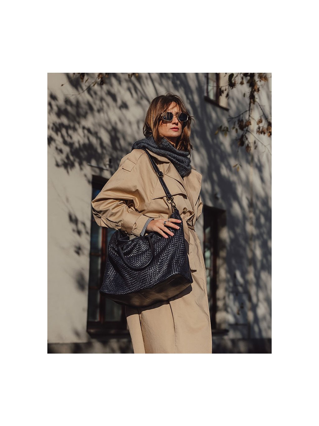Velká dámská kožená shopper kabelka spojuje italský design s praktičností pro každodenní nošení. Kombinace pletené kůže na přední straně a hladké kůže na zadní části působí elegantně a nadčasově. Pevná ucha a nastavitelný ramenní popruh umožňují pohodlné nošení v ruce i přes rameno. Prostorný interiér s kapsami na drobnosti je doplněn bavlněnou podšívkou pro vyšší komfort při používání. Kabelka nabízí dostatek prostoru pro všechny nezbytnosti a snadno se přizpůsobí různým outfitům i příležitostem.