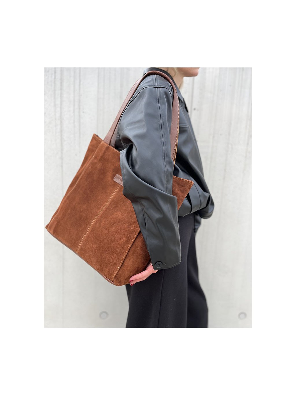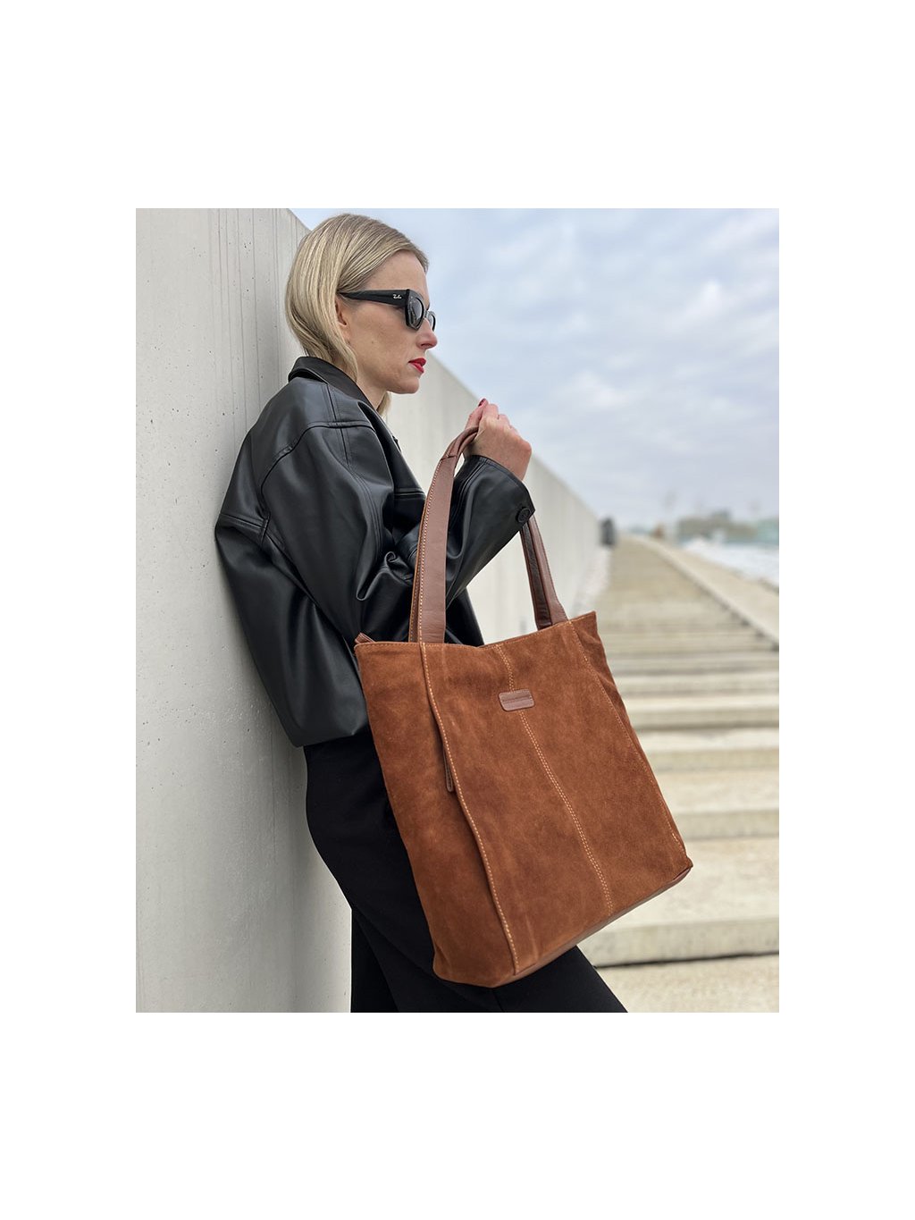 Měkká dámská shopper kabelka Marco Mazzini ušitá z přírodního semiše nabízí výjimečný komfort nošení a elegantní, nenucený vzhled vhodný pro každodenní použití.