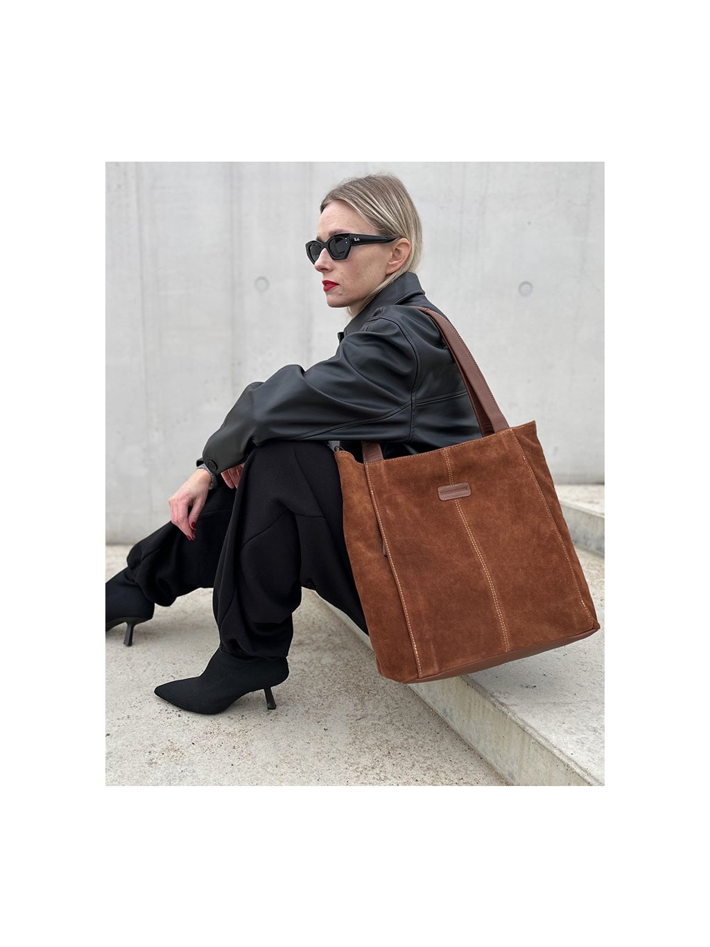 Měkká dámská shopper kabelka z přírodního semiše nabízí výjimečný komfort nošení a elegantní, nenucený vzhled vhodný pro každodenní použití. Kabelka je vyrobena z jemné semišové kůže, která je příjemná na dotek a dodává modelu přirozený luxusní charakter. Prostorný interiér poskytuje dostatek místa pro běžné osobní i pracovní nezbytnosti a je prakticky členěn pomocí dvou otevřených kapes a jedné kapsy na zip, doplněných o další uzavíratelné kapsy na přední a zadní straně. Zapínání na zip zajišťuje bezpečné uložení obsahu, zatímco dlouhá pohodlná ucha umožňují komfortní nošení na rameni i při celodenním používání. Lehká konstrukce a měkké provedení podtrhují praktičnost modelu, který se snadno přizpůsobí každodenním potřebám. Precizní zpracování, kvalitní přírodní materiál a důraz na detail činí z této shopper kabelky nadčasový doplněk s elegantním městským charakterem vhodným do práce i do města.