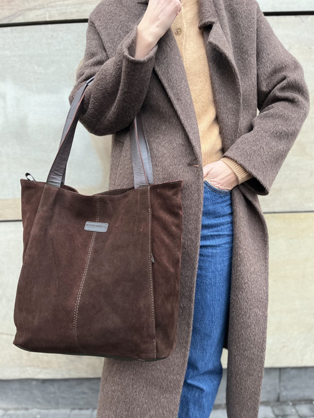 Měkká dámská shopper kabelka Marco Mazzini ušitá z přírodního semiše nabízí výjimečný komfort nošení a elegantní, nenucený vzhled vhodný pro každodenní použití.