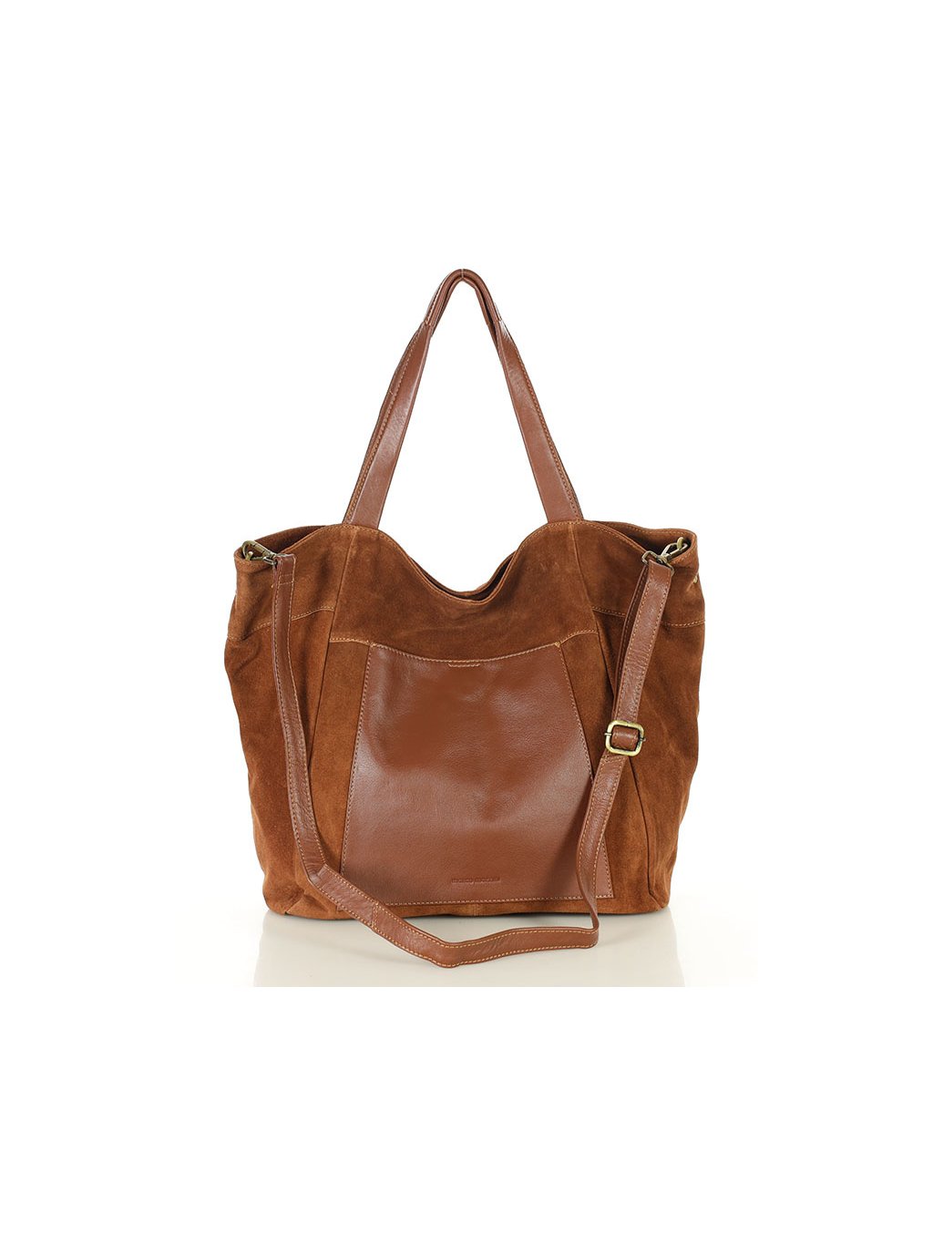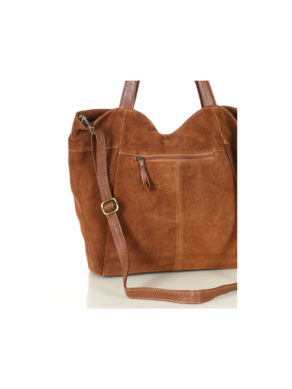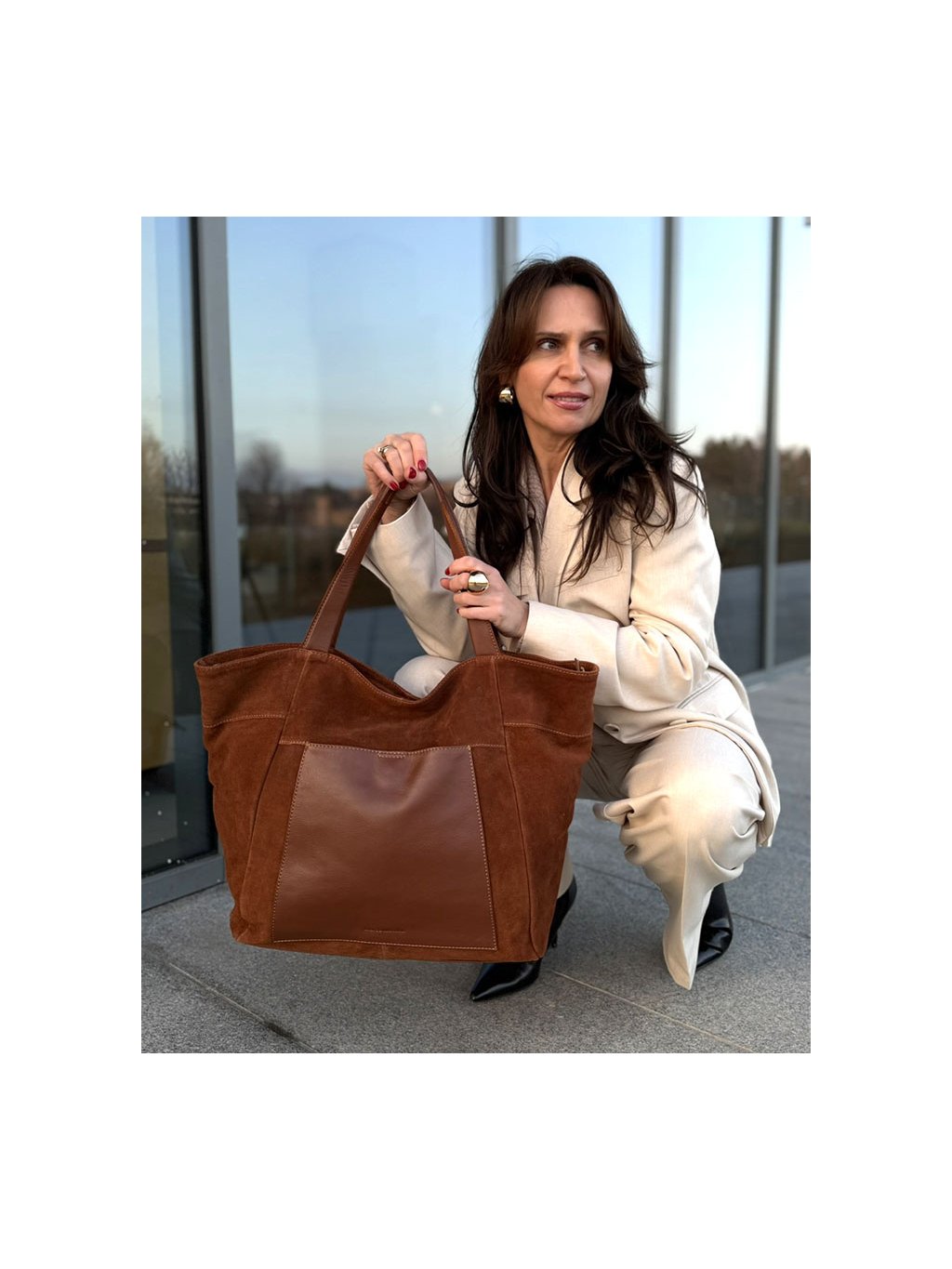 Velká dámská shopper kabelka z přírodního semiše je navržená pro každodenní pohodlné nošení.