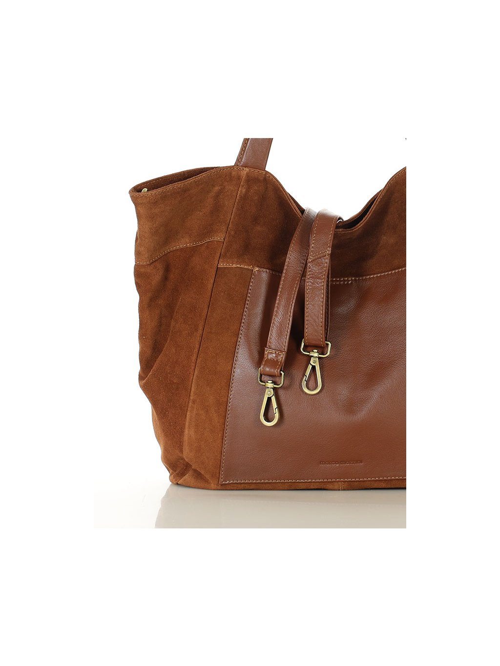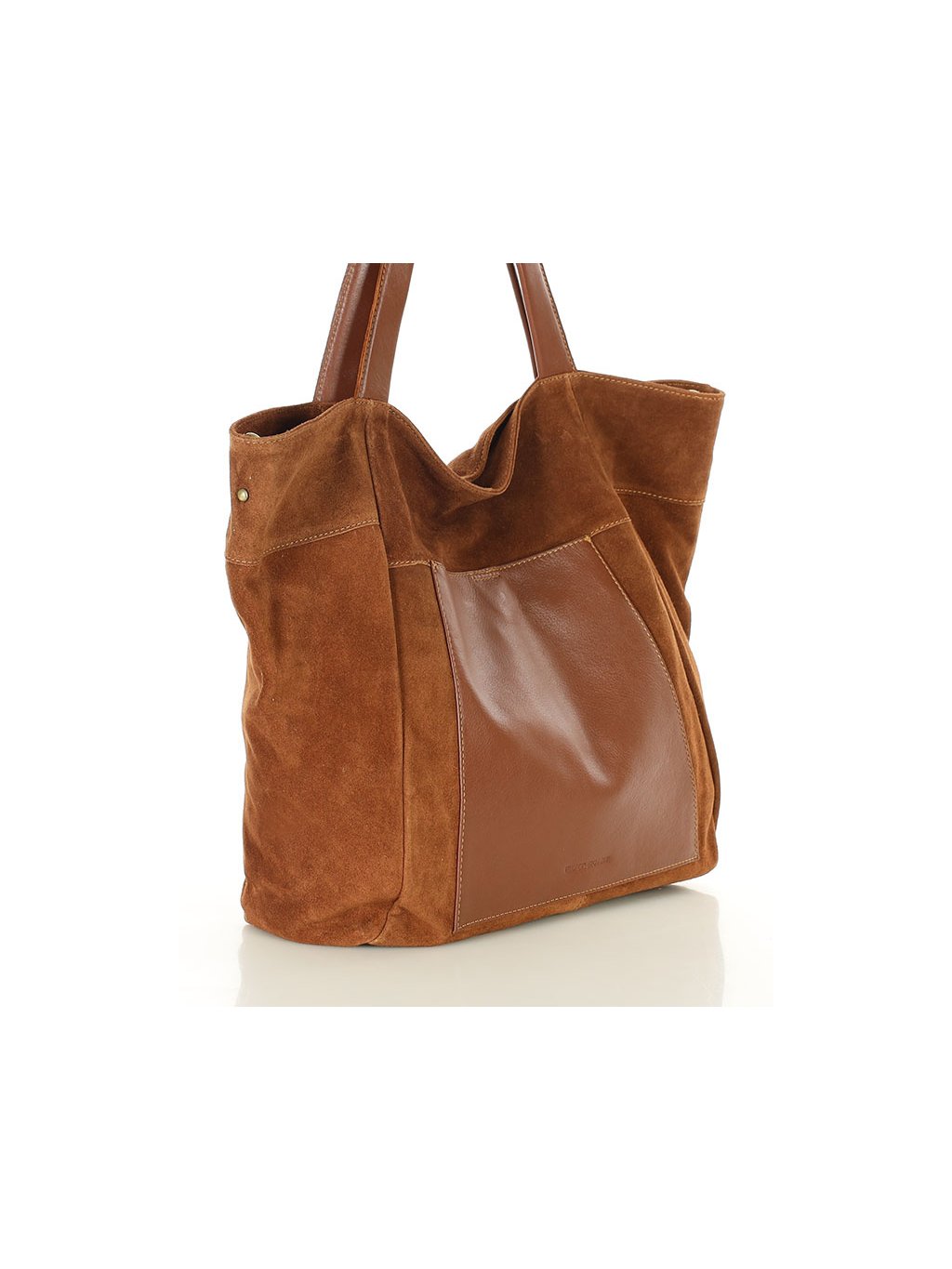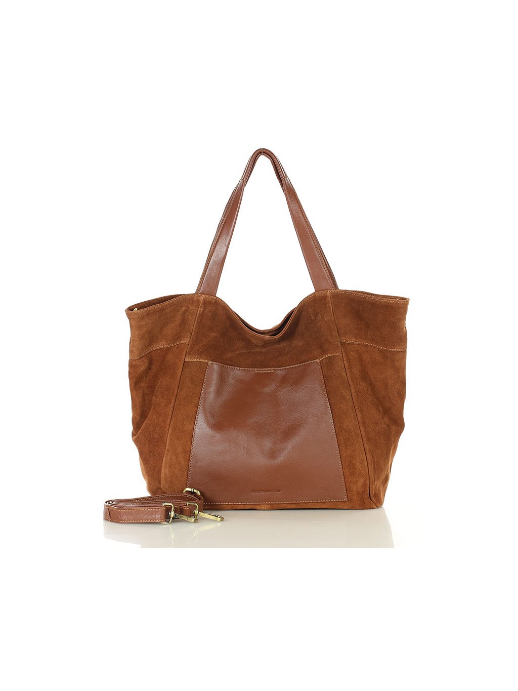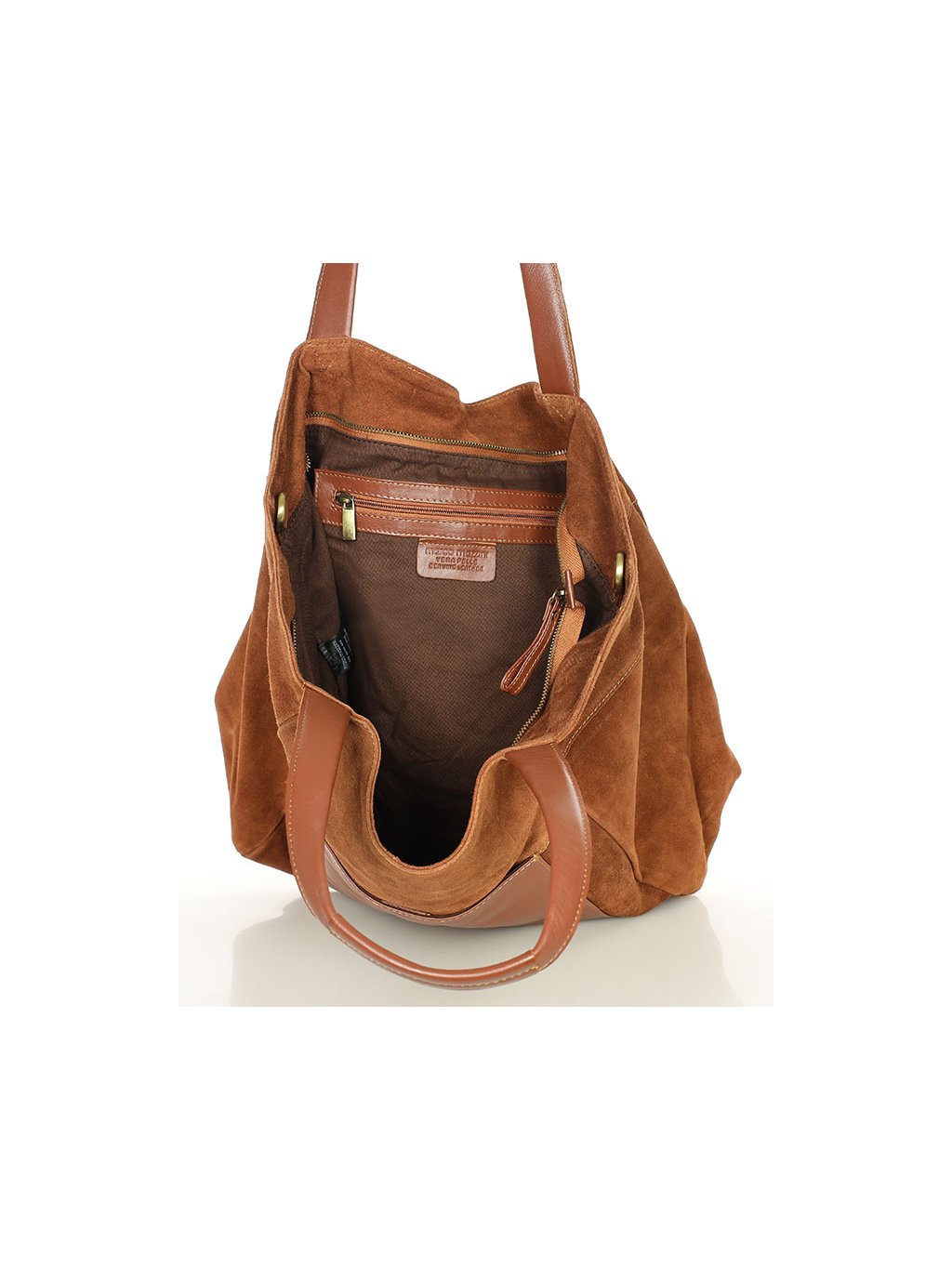 Velká dámská shopper kabelka z přírodního semiše je navržená pro každodenní pohodlné nošení.