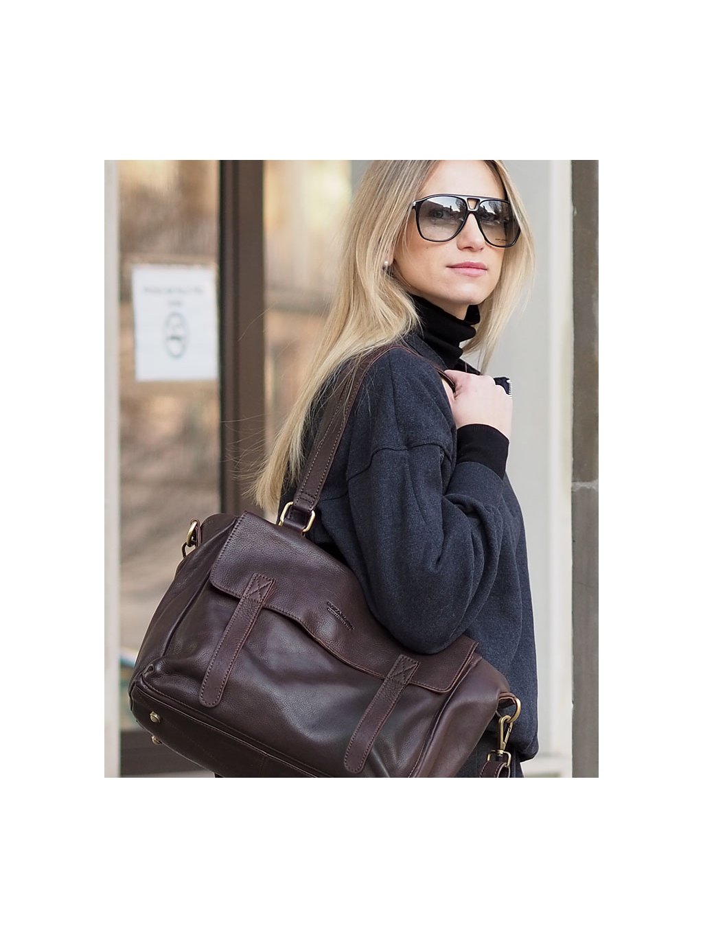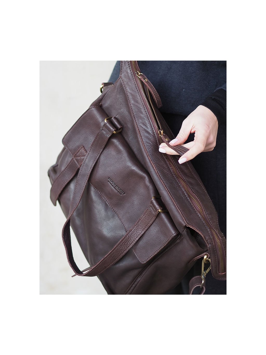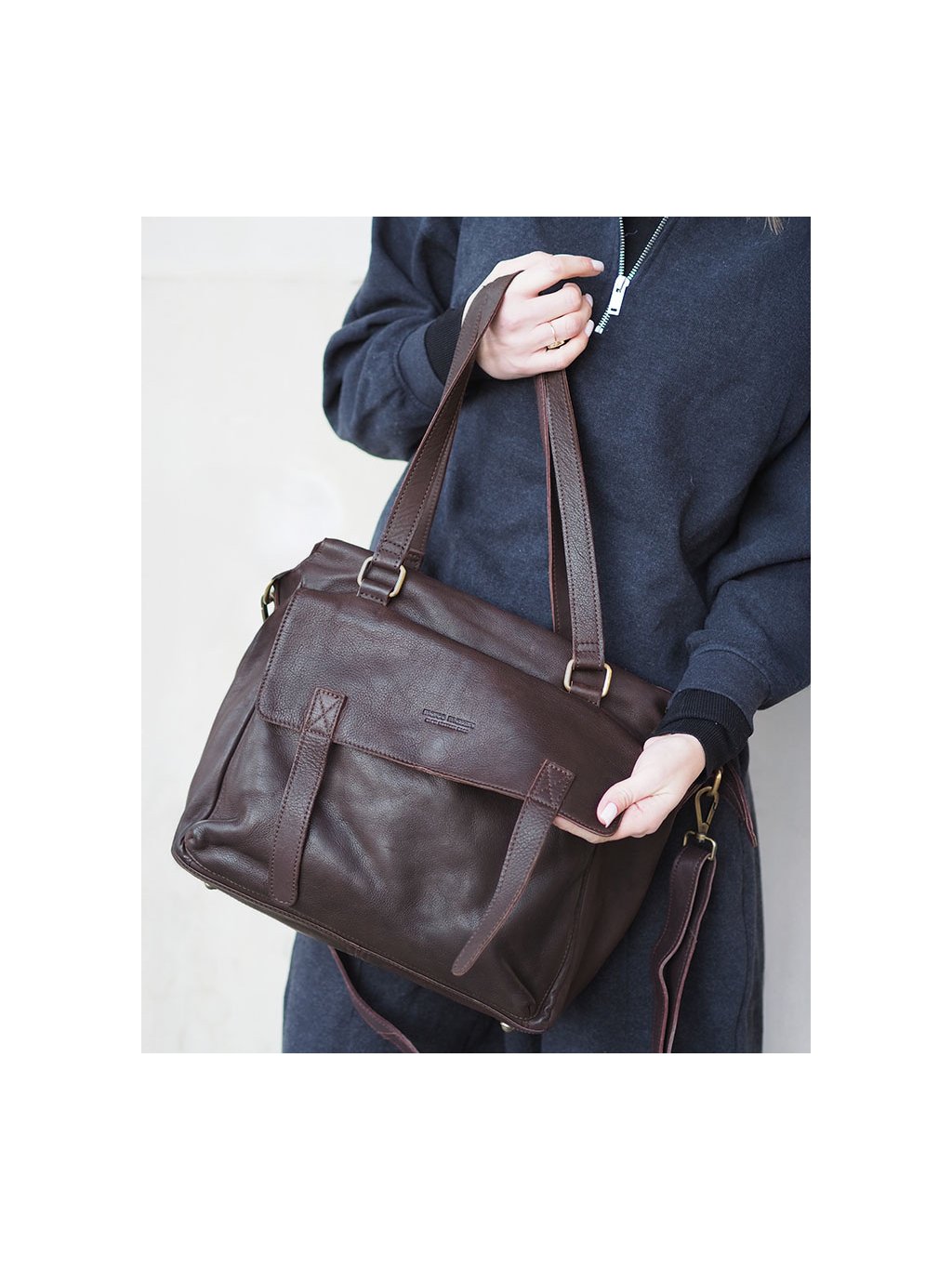 Kožená shopper kabelka představuje praktický a elegantní doplněk vhodný do práce nebo na nákupy. Je vyrobena z měkké přírodní kůže, která je měkká a příjemná na dotek. Vnitřní prostor je navržen tak, aby pohodlně pojal dokumenty, pracovní nezbytnosti i notebook, a díky zipové přepážce umožňuje přehledné uspořádání obsahu. Přední a zadní kapsa poskytují rychlý přístup k drobnostem, zatímco ochranné kovové nožky chrání dno kabelky při odkládání. Pevná ucha a odnímatelný ramenní popruh nabízejí variabilní možnosti nošení. Kabelka spojuje nadčasový městský vzhled s praktickým řešením a je vhodná pro ženy, které hledají kvalitní kožený doplněk pro každodenní využití.