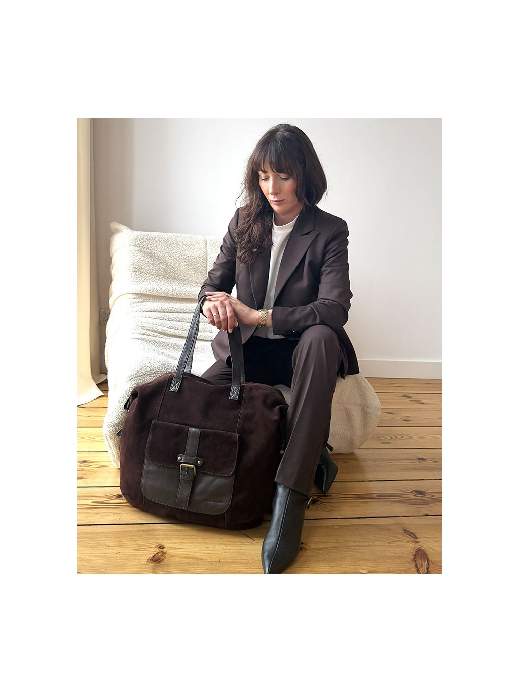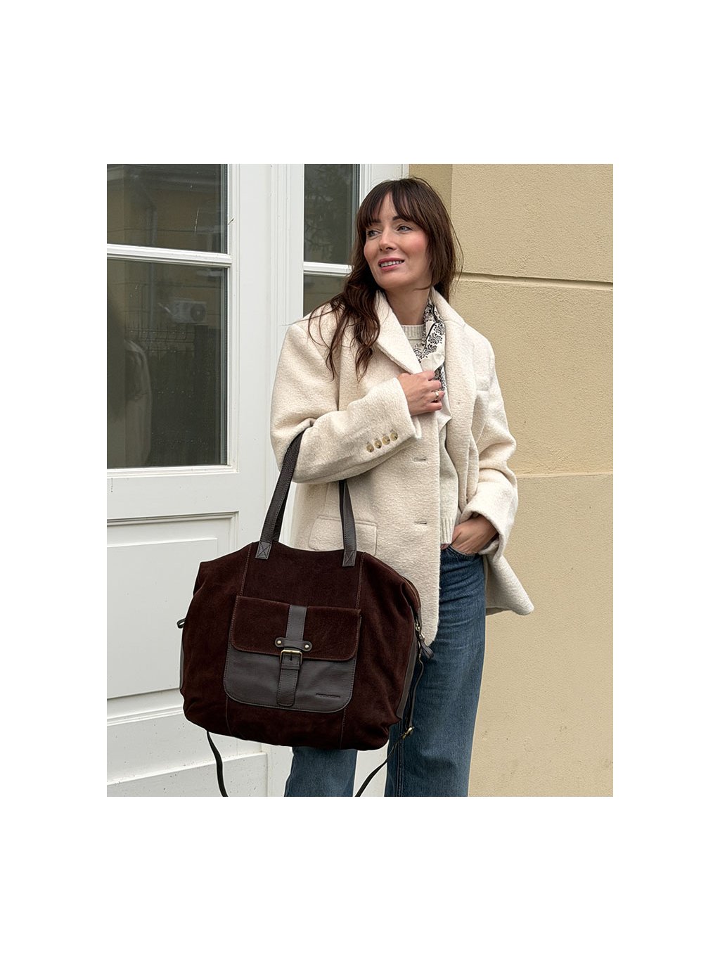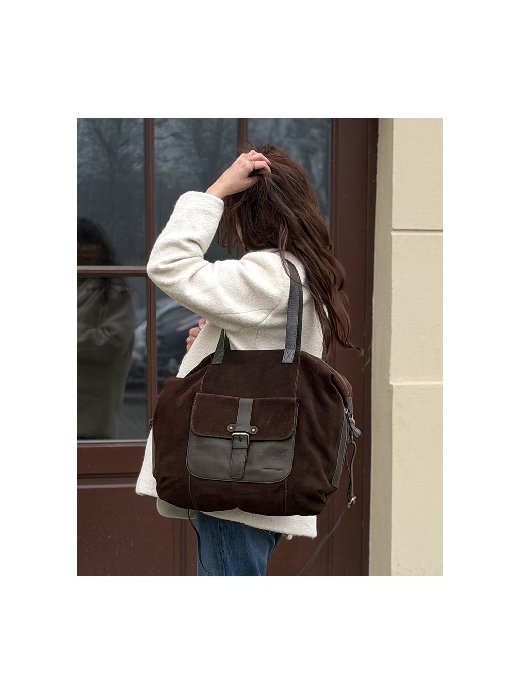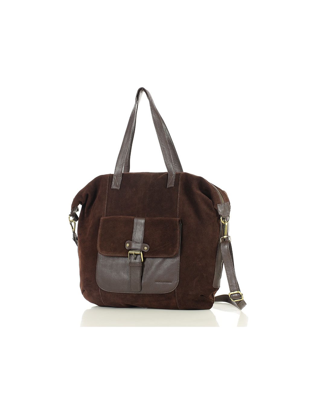 Velká dámská shopper bag kabelka z přírodního semiše v minimalistickém městském stylu značky Marco Mazzini.