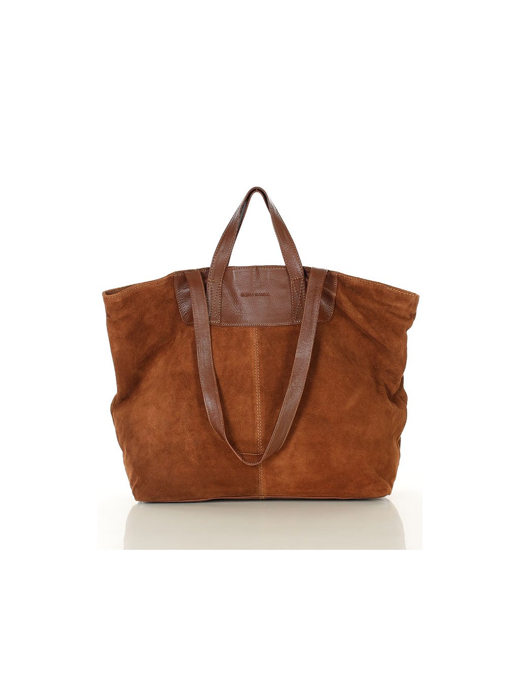 Velká dámská nákupní taška z přírodního semiše v minimalistickém městském stylu značky Marco Mazzini.